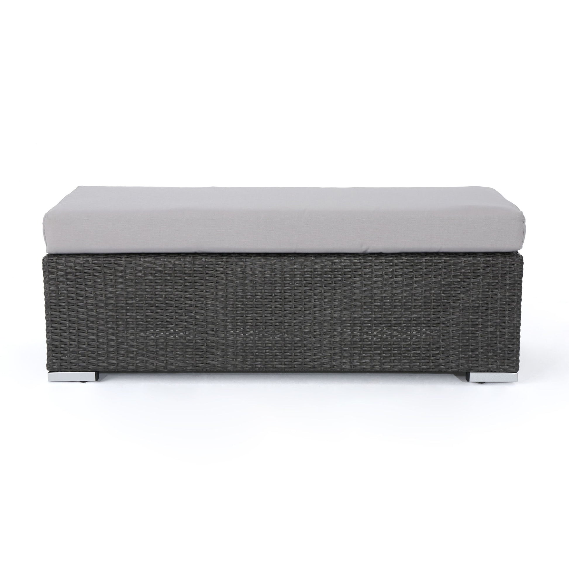 Enthrallia - Outdoor Wicker Bench With Cushion - Gray
