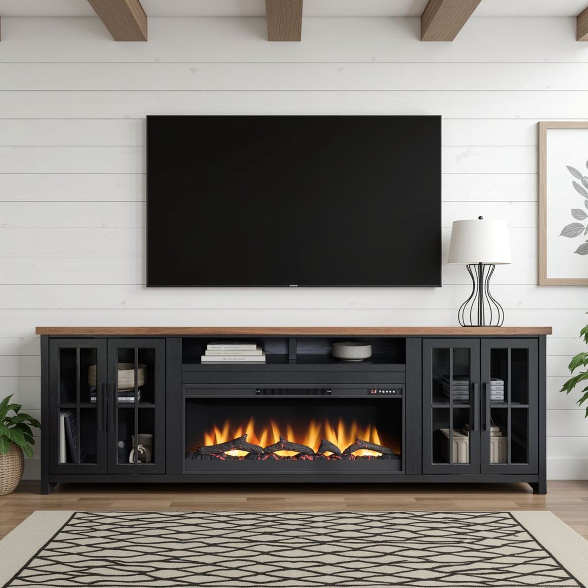 Essex - Fireplace TV Stand Console For TVs Up To 100" - Black, Whiskey