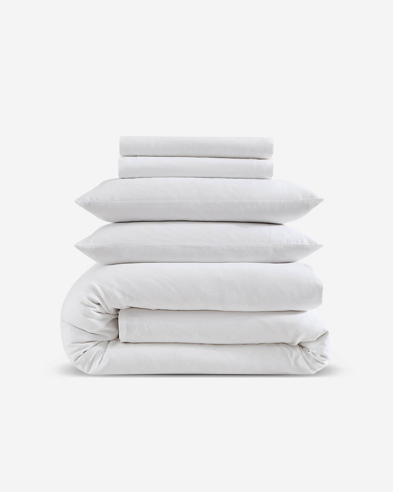 Crafted from Linacel™, our unique blend of Belgian linen and silky TENCEL™ Lyocell, this winning bedding bundle elevates linen’s classic, beloved aesthetic with our signature touch of unparalleled softness (yup, that’s kind of our thing.) Look no further for the easiest solution to create the sustainably-sourced, aesthetically pleasing, soft and breathable bed of your dreams.