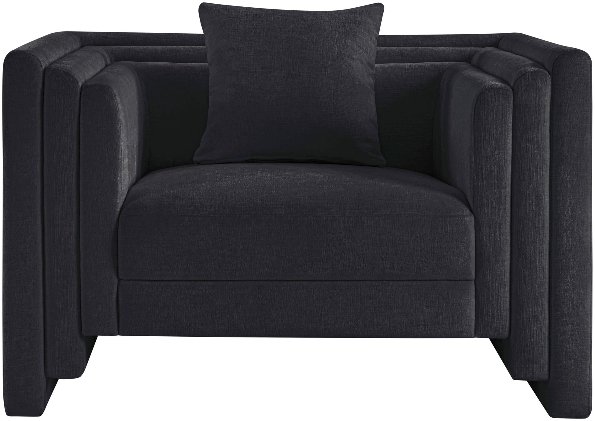 Make this Everett chenille fabric chair the center of a cozy reading nook. Handsome from every angle, this posh chair is plumply appointed to put supreme comfort within easy reach. Soft chenille upholstery fabric adds to its lavish feel while a staggered design gives it a modern edge. An included pillow gives it a beckoning vibe while the chair's solid wood inner frame makes it a lasting addition in any room.