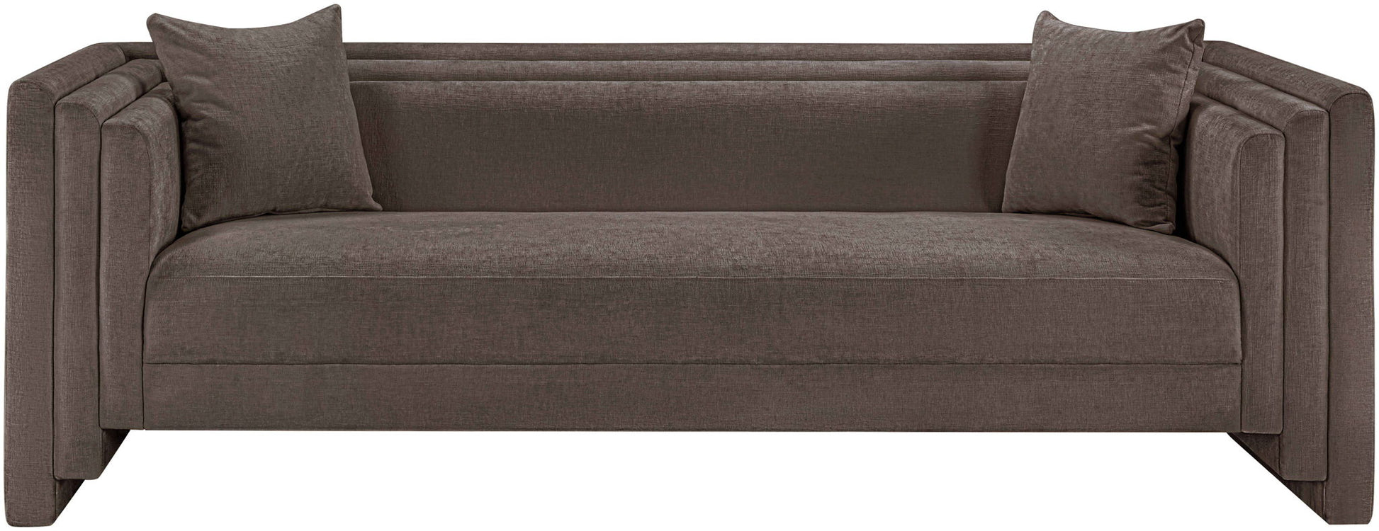 Make this Everett chenille fabric sofa the center of a cozy reading nook. Handsome from every angle, this posh sofa is plumply appointed to put supreme comfort within easy reach. Soft chenille upholstery fabric adds to its lavish feel while a staggered design gives it a modern edge. An included pillow gives it a beckoning vibe while the sofa's solid wood inner frame makes it a lasting addition in any room.