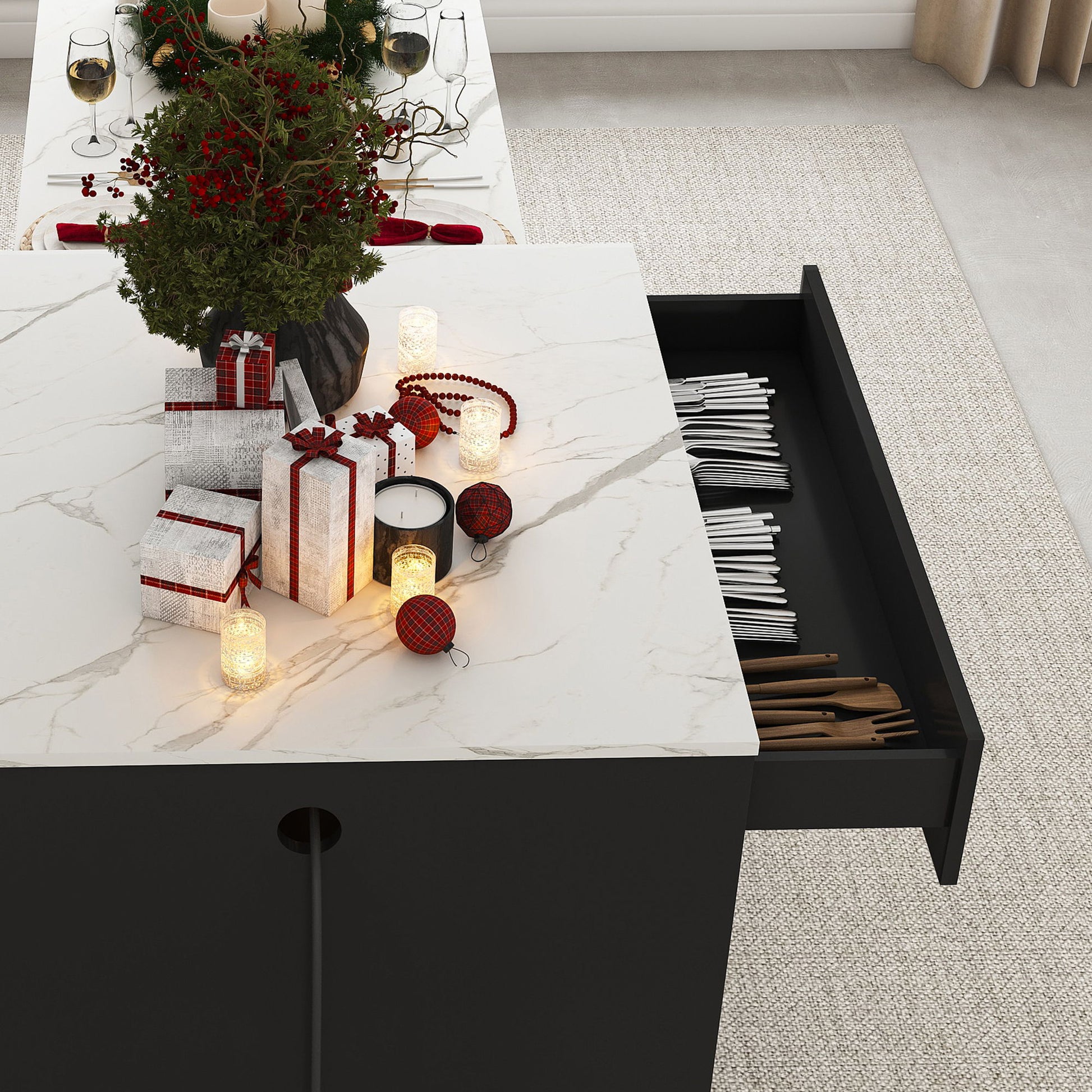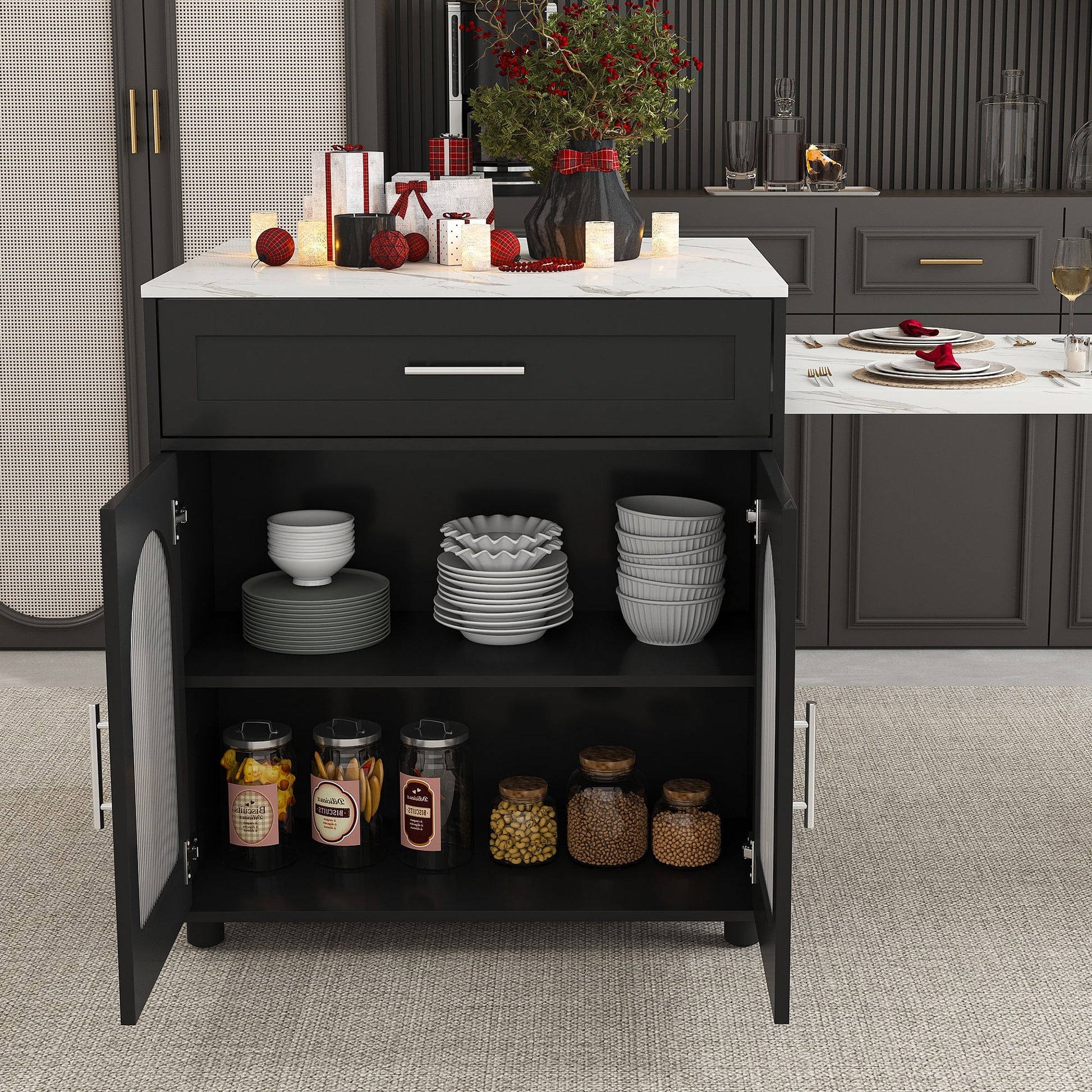 - Multi-Functional Use: Serves as a prep station, coffee corner, serving cart, or dining surface for everyday and entertaining needs