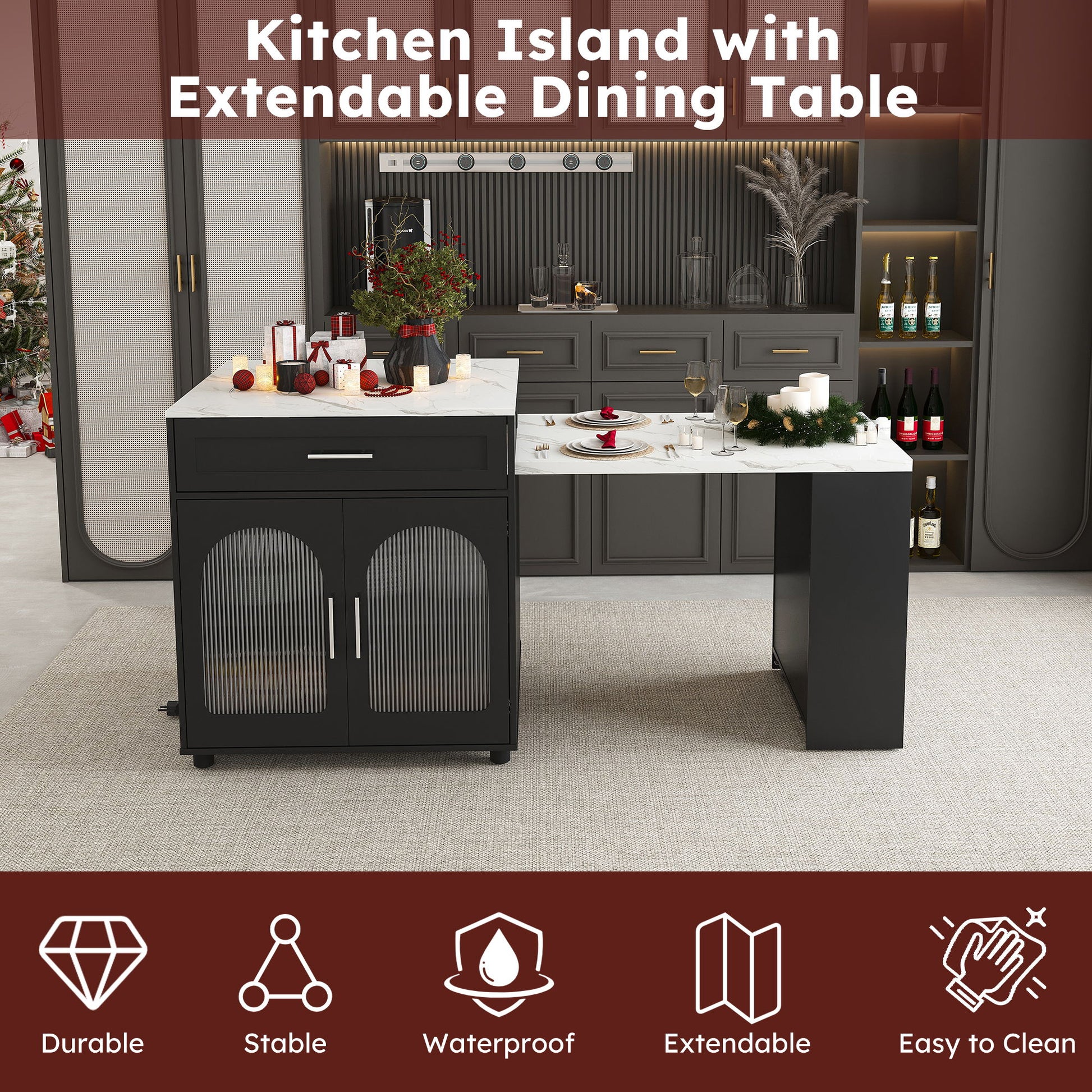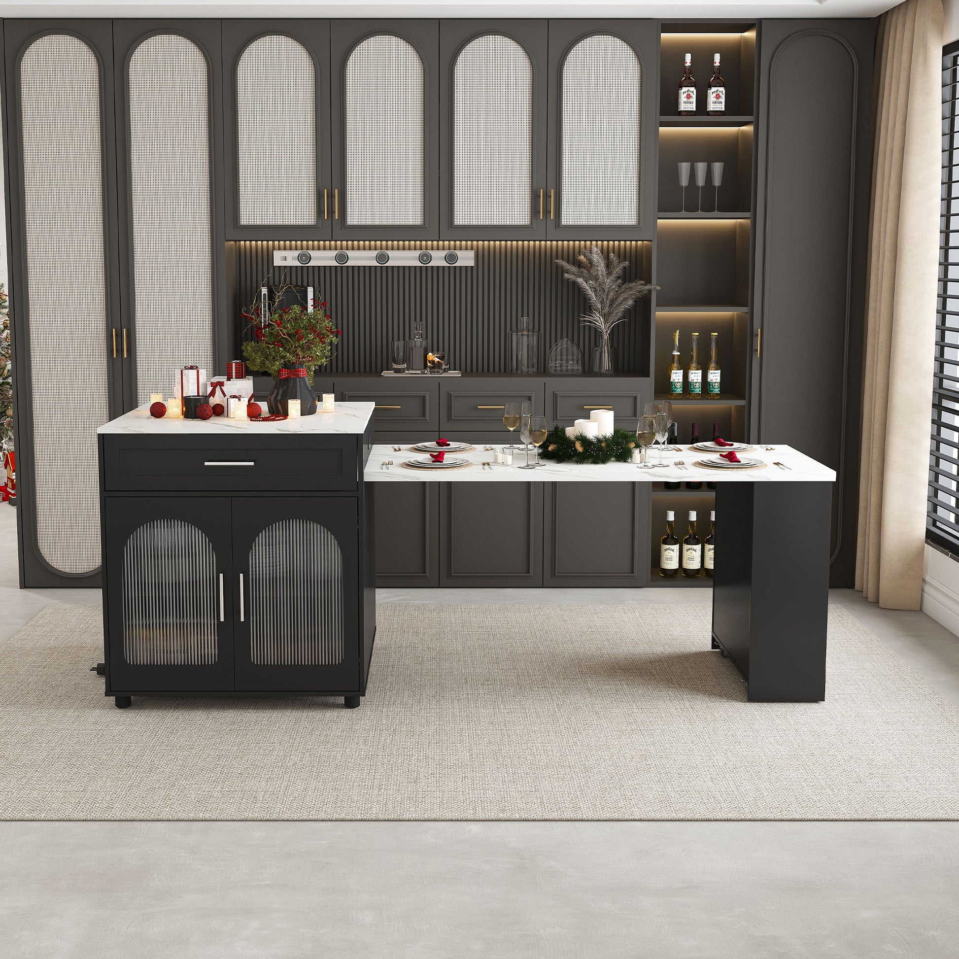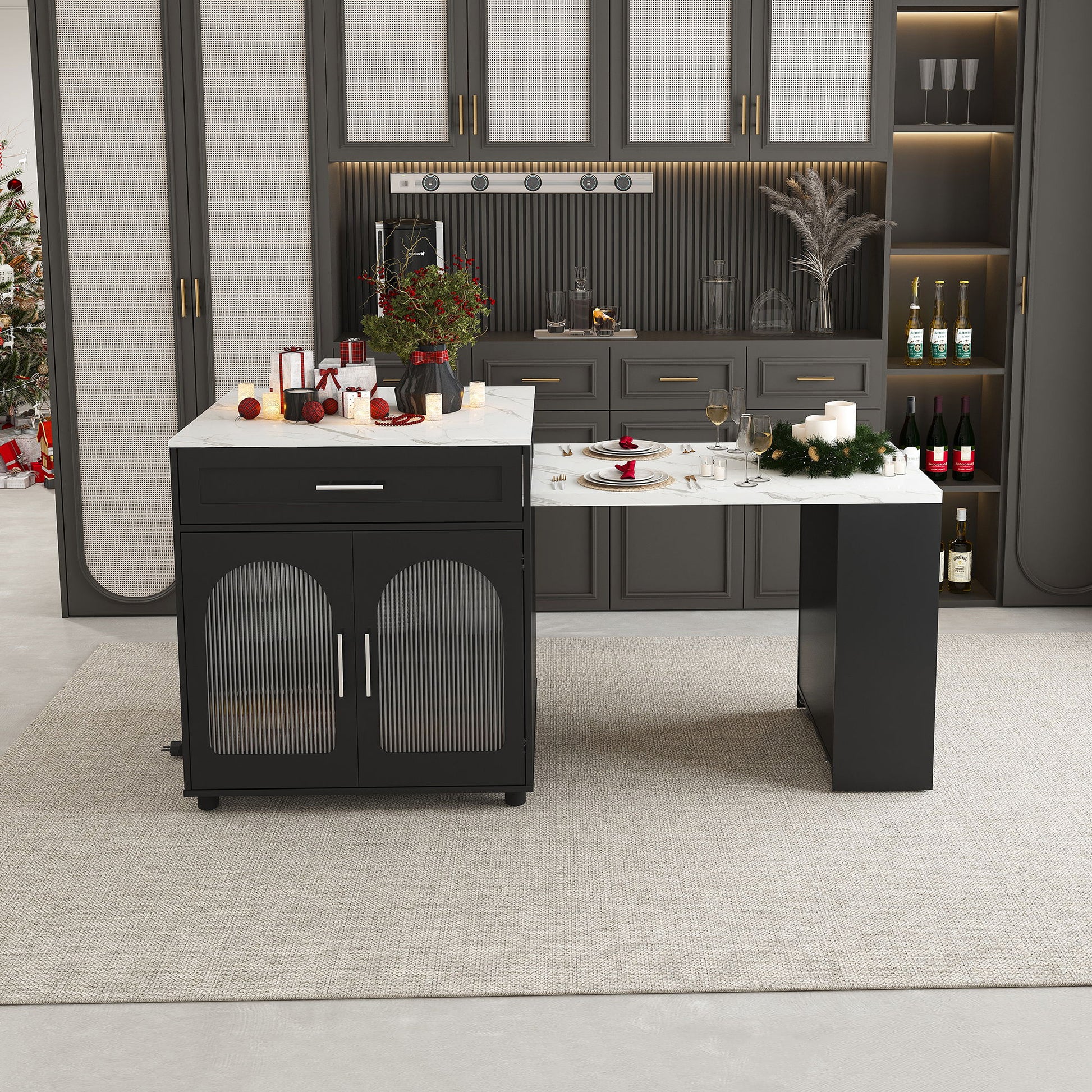 Expandable Kitchen Island With Dining Table - Black