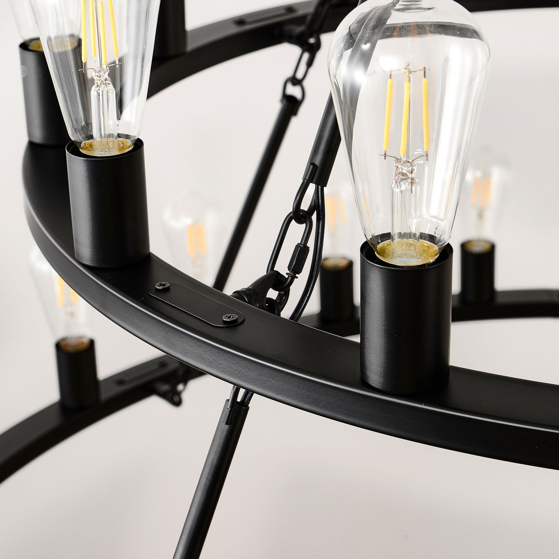 - Vintage Style: The matte black wagon wheel chandelier exudes a nostalgic and industrial aesthetic.