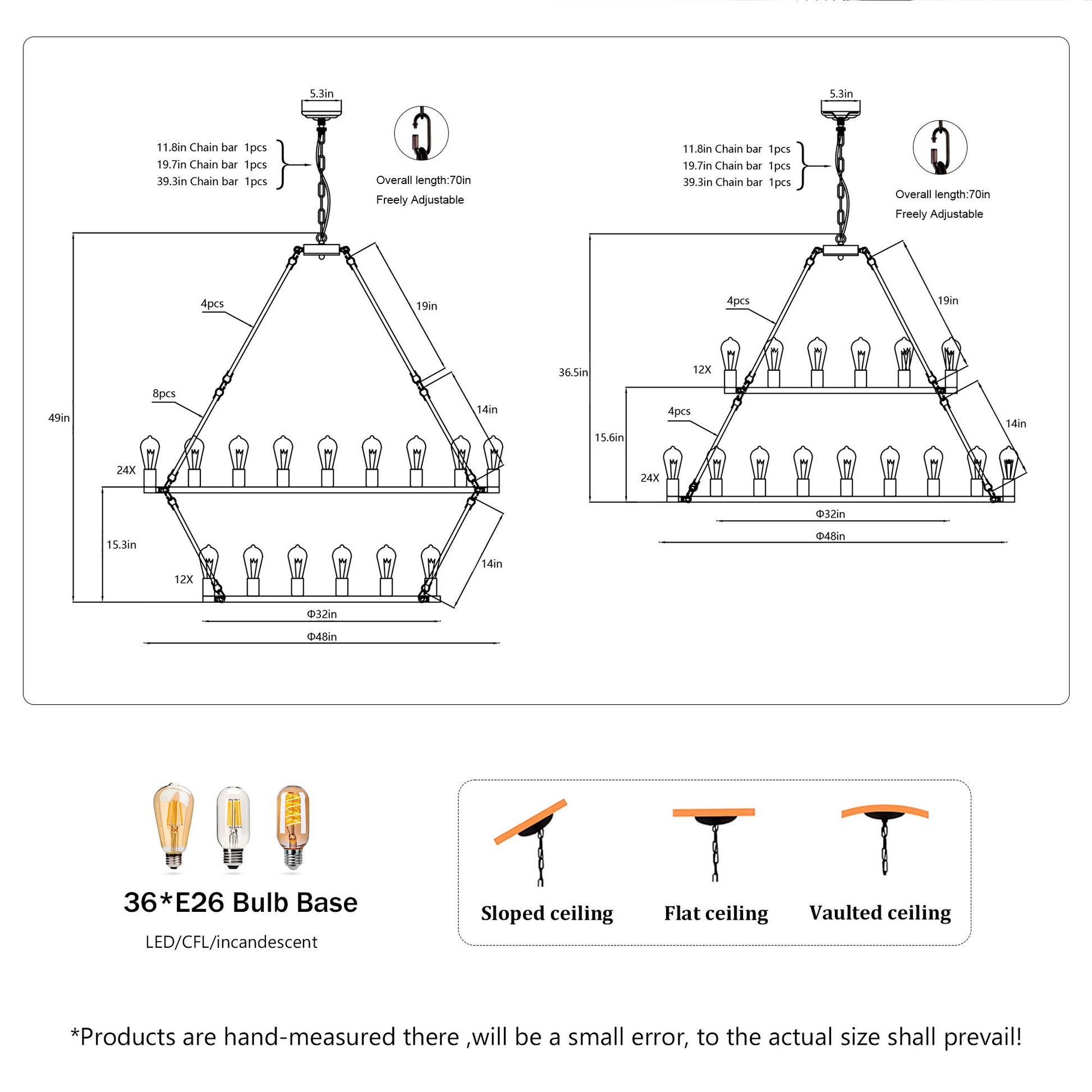 - Bulb Compatibility: Designed for 36 E26 bulbs, each with a recommended maximum power of 25W (bulbs not included).