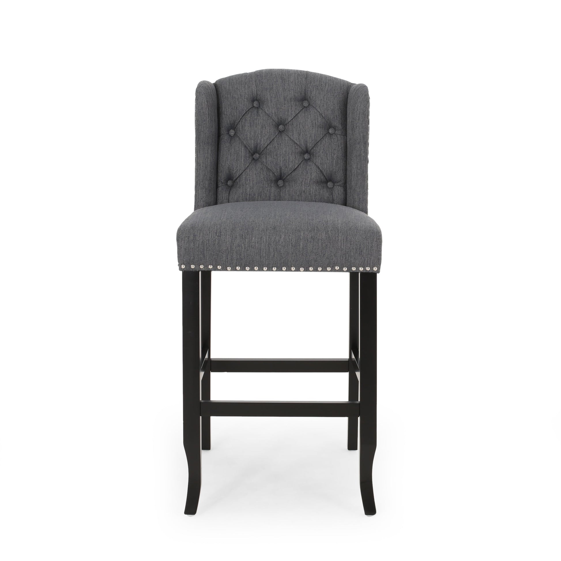 Fabric Tufted Counter Stool with Nailhead Accents - Set of 2