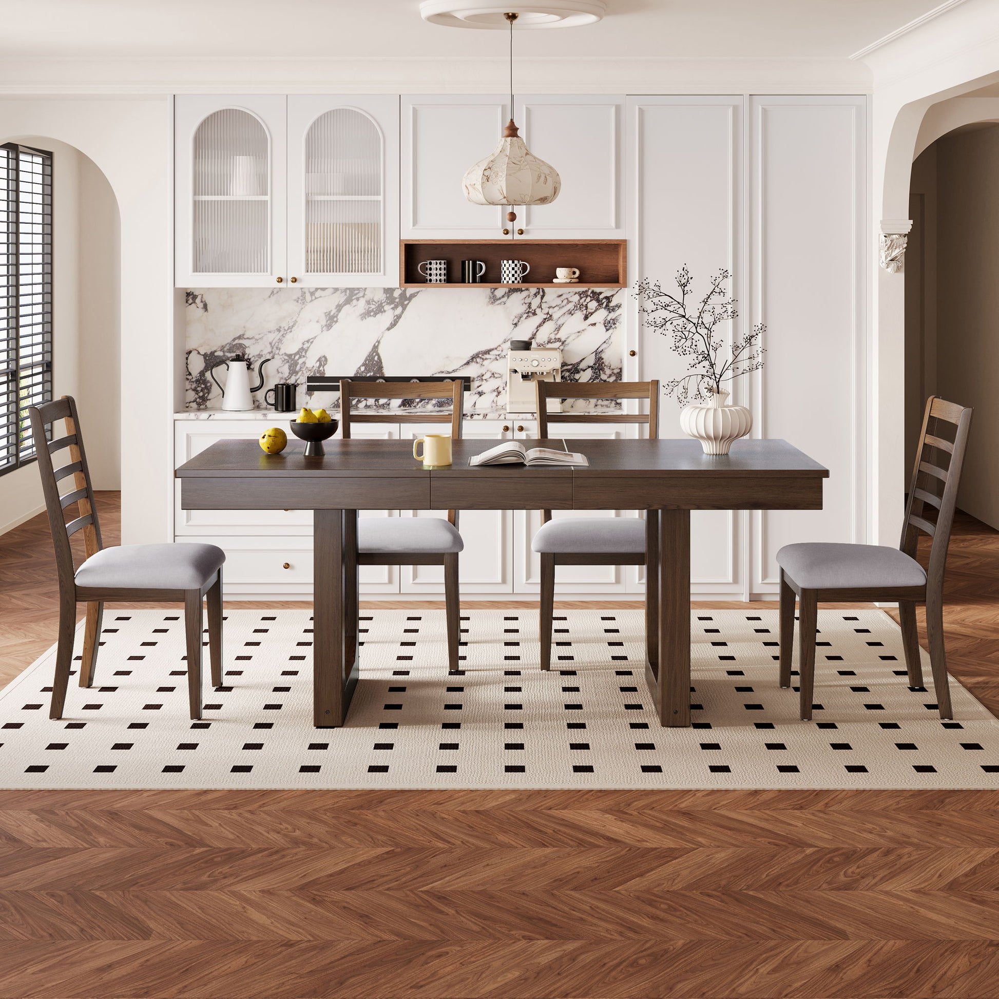 60 To 78", Extendable Dining Table, Farmhouse Wooden Kitchen Table With Removable Leaf, Seats 4 - 8 - Brown