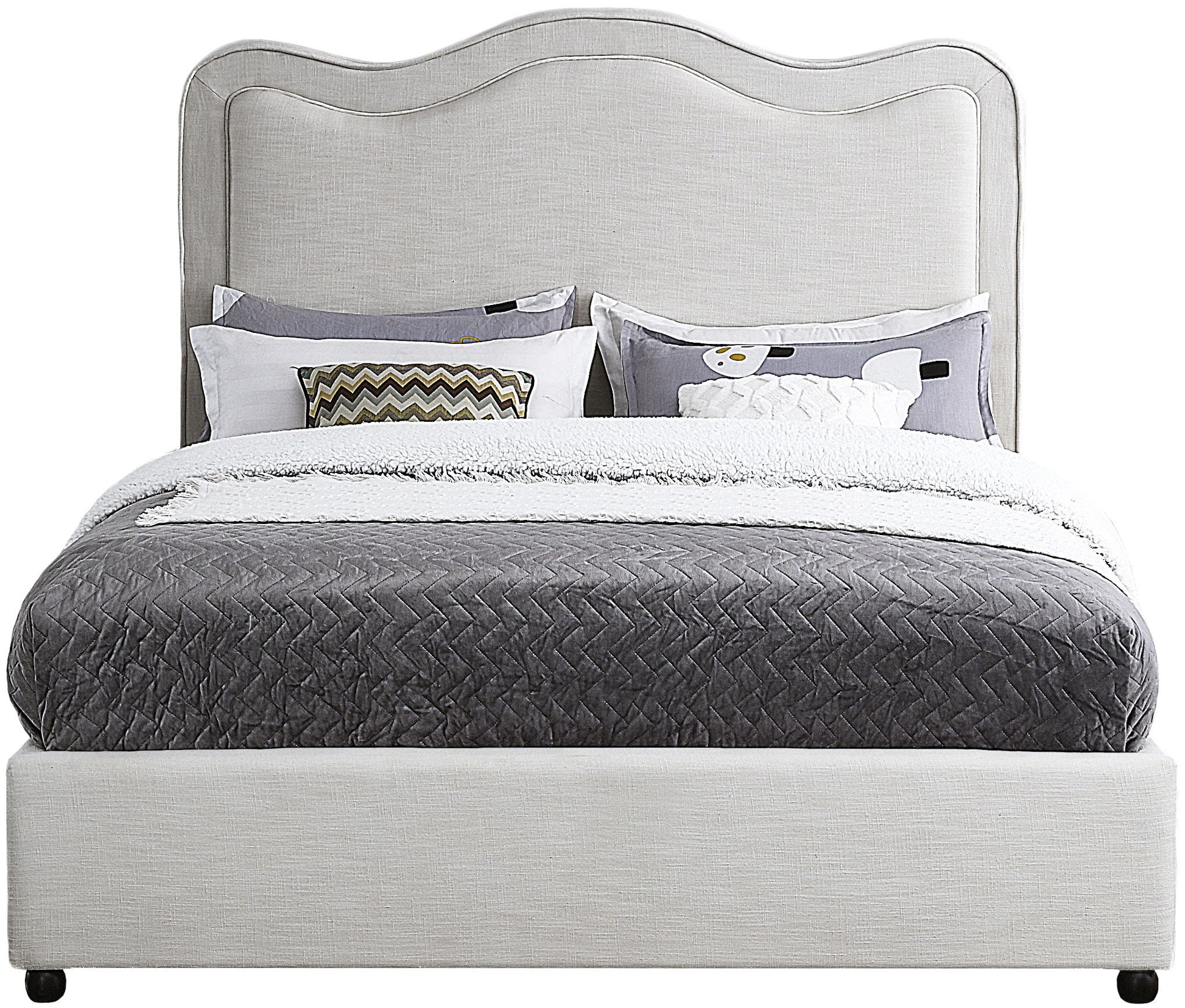 Catch some Z's in style when you're tucked into this Felix linen fabric bed. Rich linen fabric covers nearly every square inch of this fabulous bed, which features a curved headboard that's slightly padded to give you the ideal cozy spot for catching up on your bedtime reading.