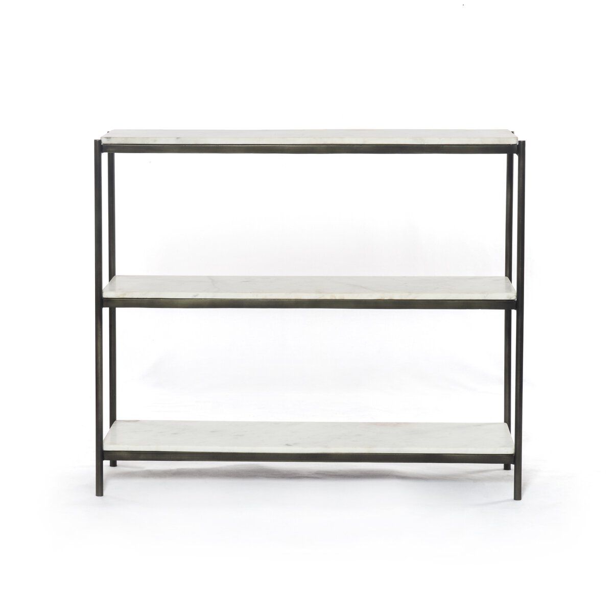 Designed to add a refined accent to any interior, the Felix Small Console Table by Four Hands balances clean elegance with subtle industrial character. Three tiers of polished white marble create an open, airy profile while offering generous surface space for display and everyday organization. The layered design introduces visual depth, allowing the natural beauty of the marble to take center stage.