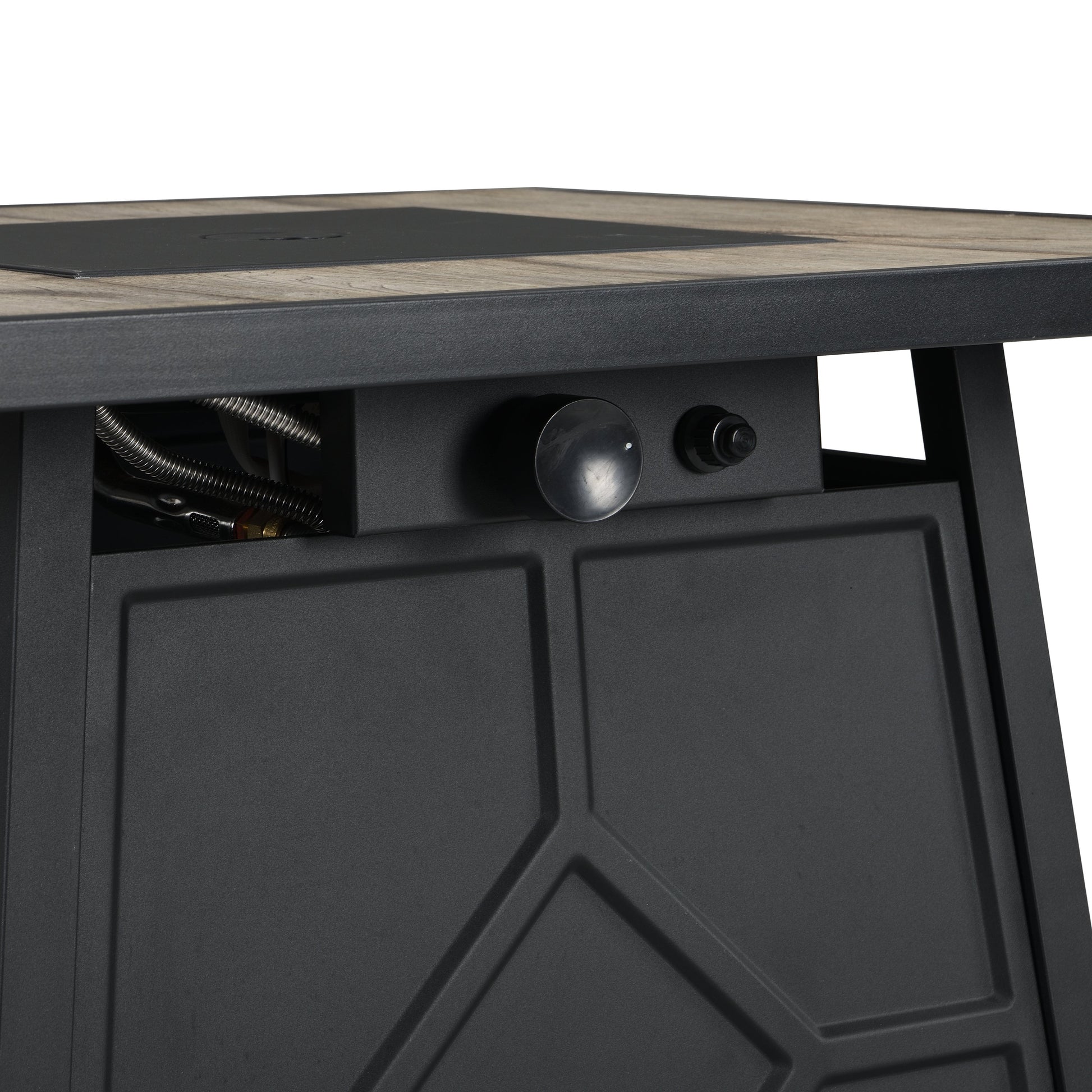 - Concealed propane tank storage within the closed table body for a seamless look