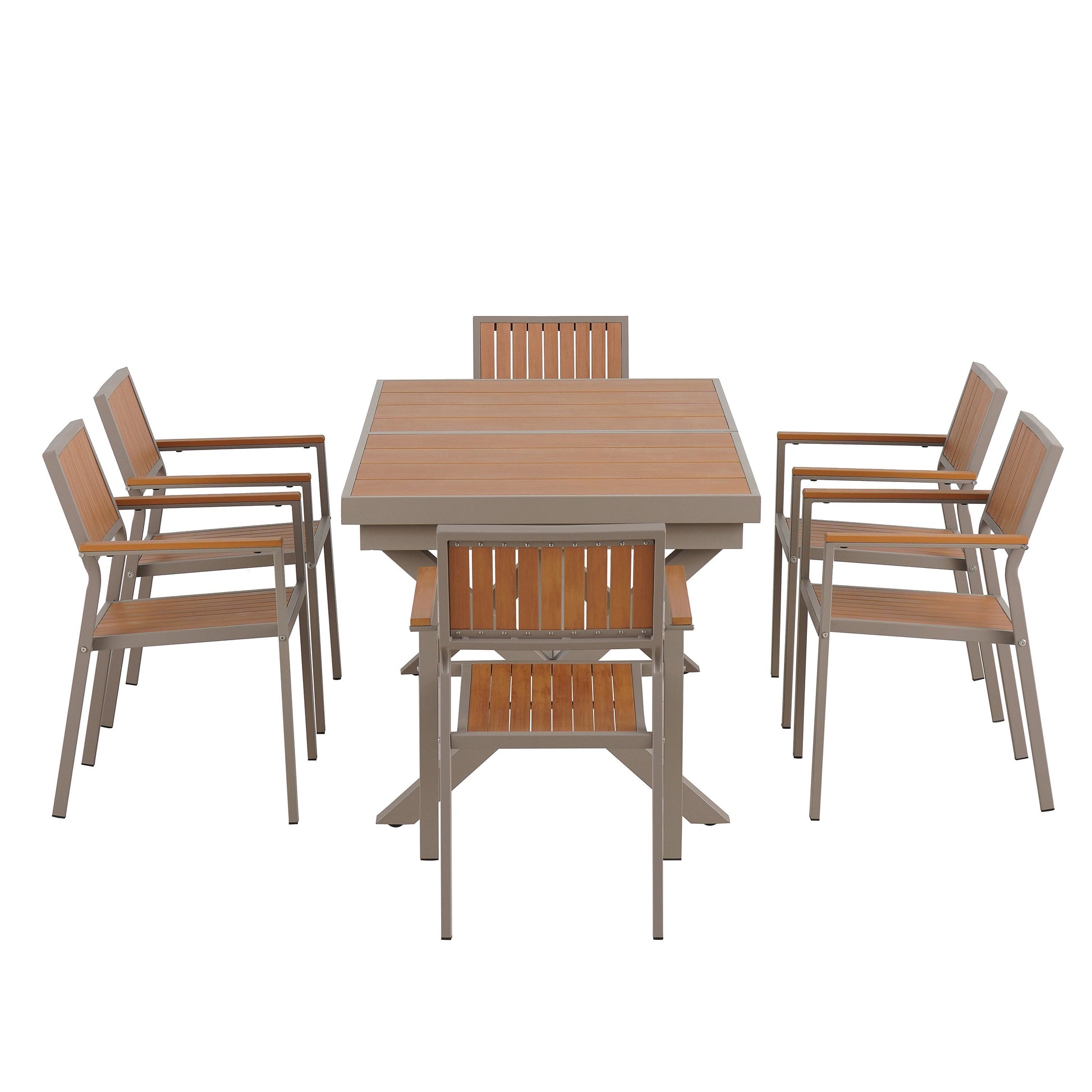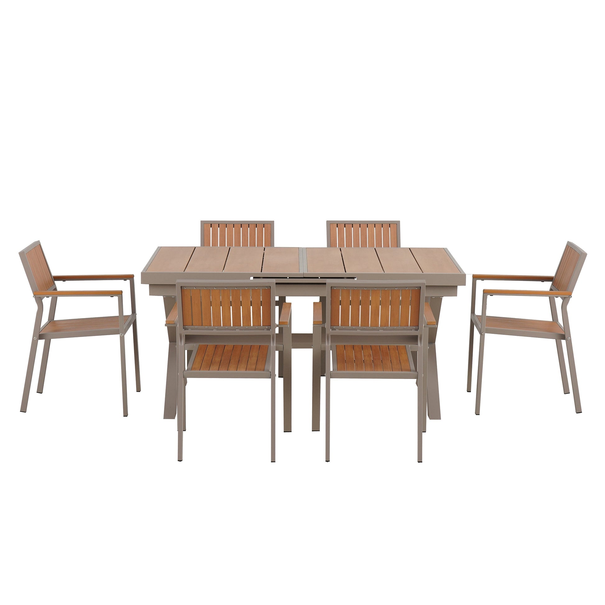 Flexible Outdoor Dining Set with Extendable Table and Six Chairs