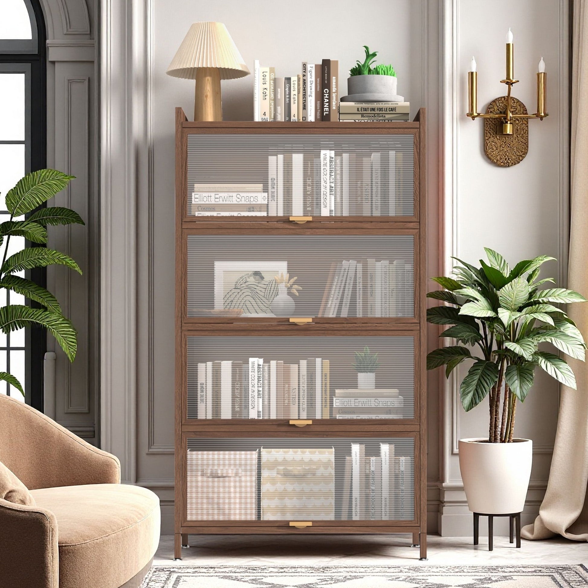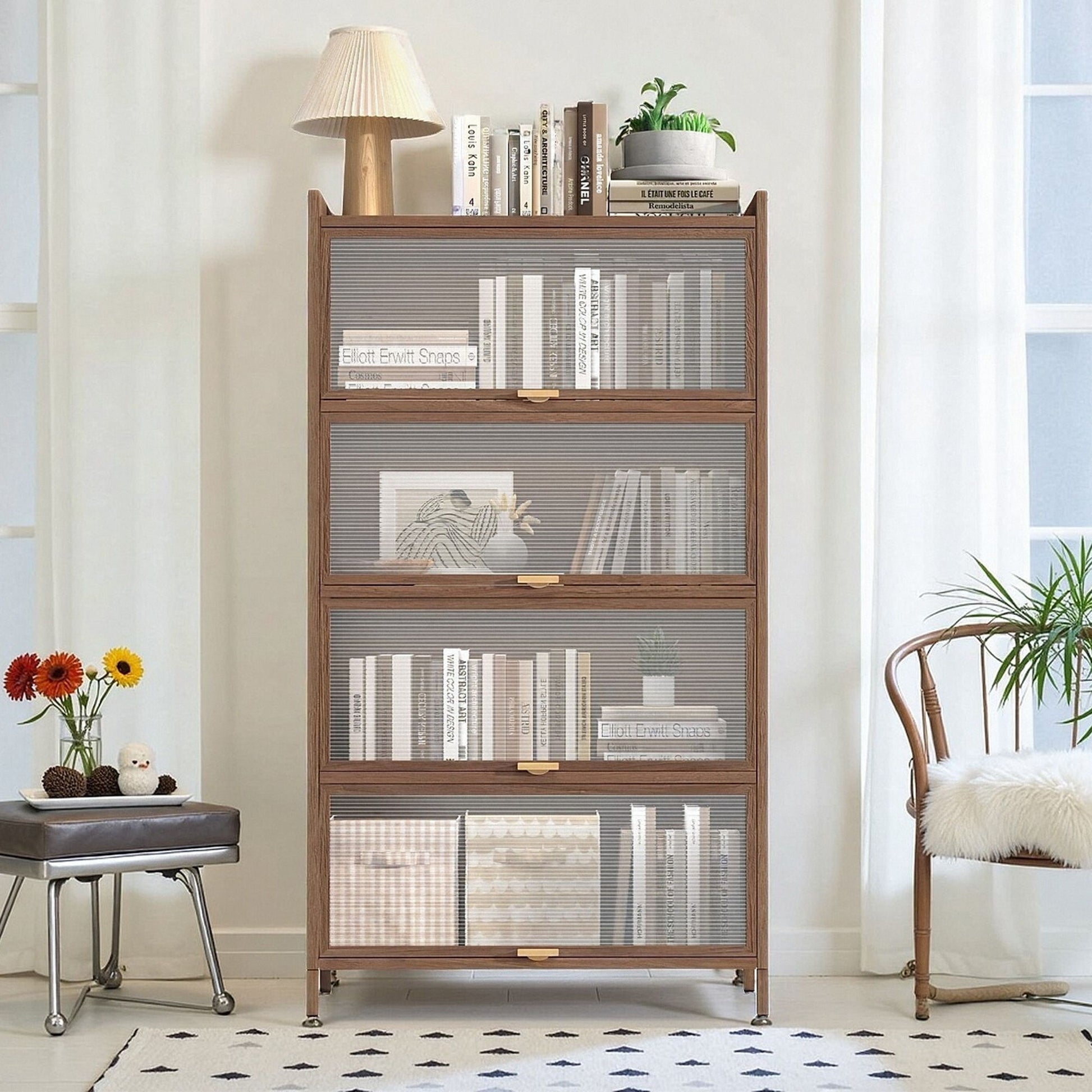 4 Flip Doors Cabinet, With Ample Storage Space For Living Room - Walnut