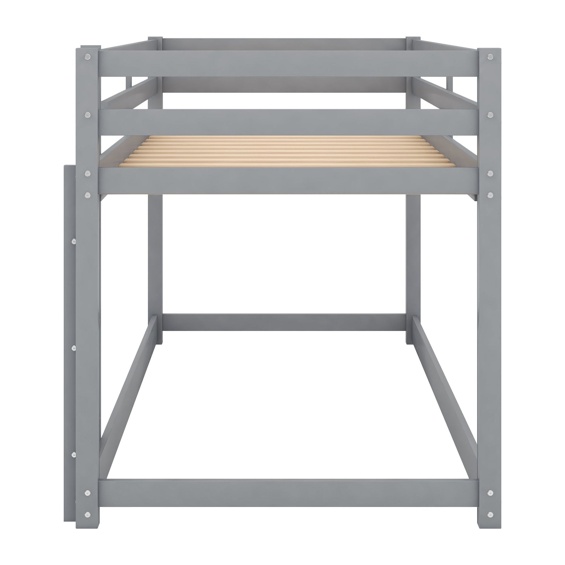 Twin Over Twin Floor Bunk Bed With Ladder - Gray