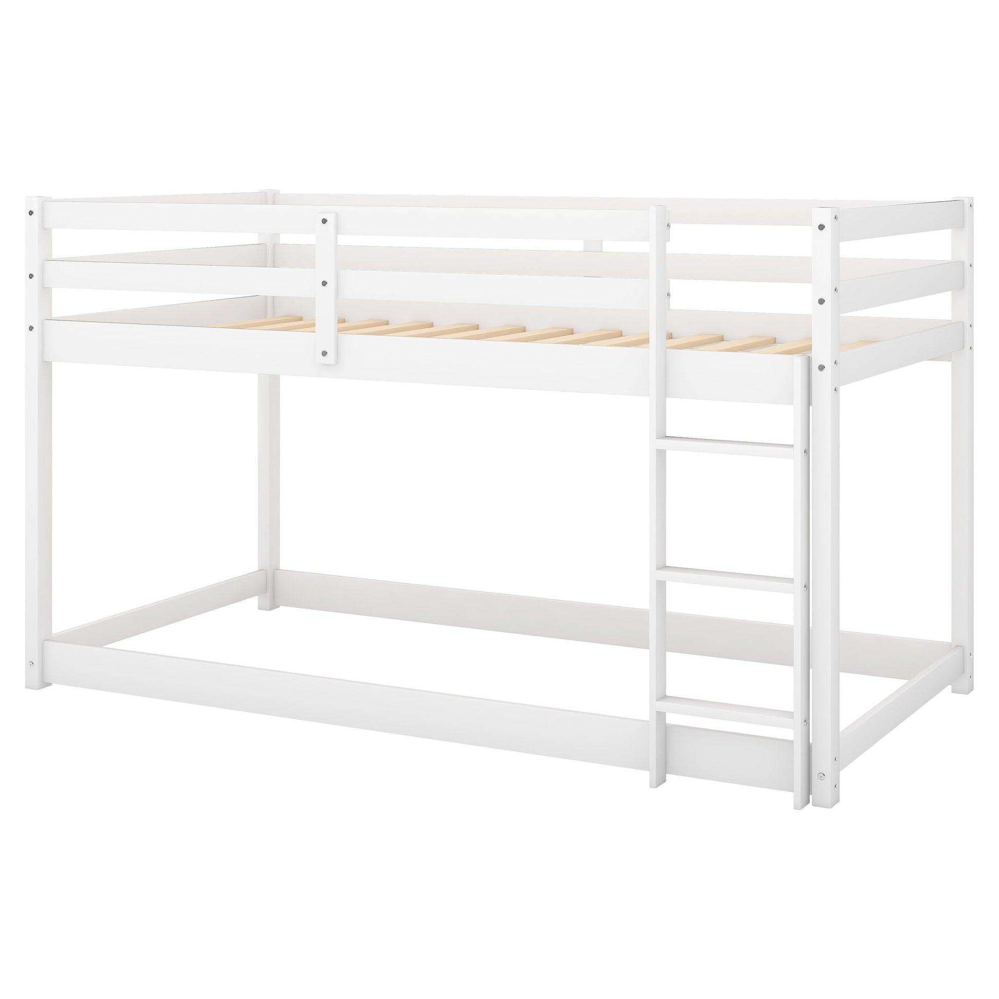 Twin Over Twin Floor Bunk Bed With Ladder - White