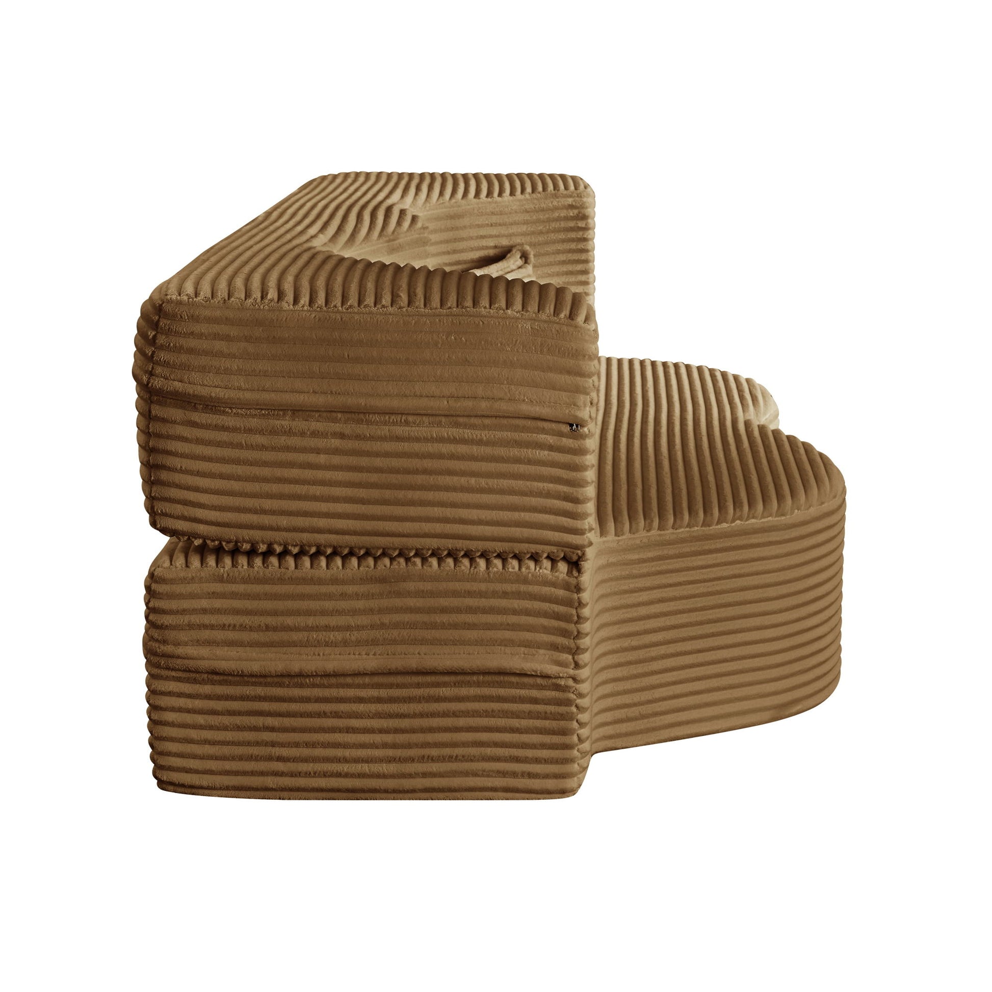 Floor Sofa With 2 Pillows, Convertible Plush Corduroy Foam Filled Sleeper Sofa Bed - Camel