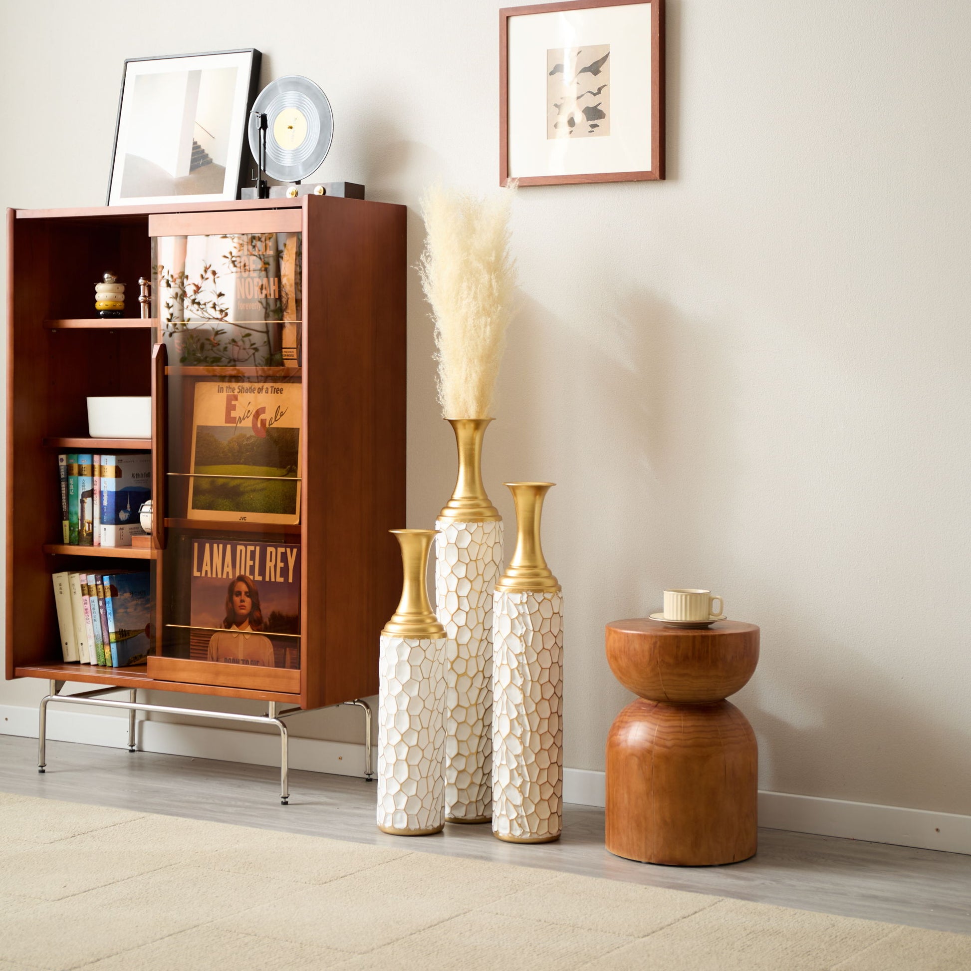Floor Metal Vase Modern Style Decoration Home Metal Vase (Set of 3) Gorgeous Home Decoration Large Glazed Metal Vases - Gold / White