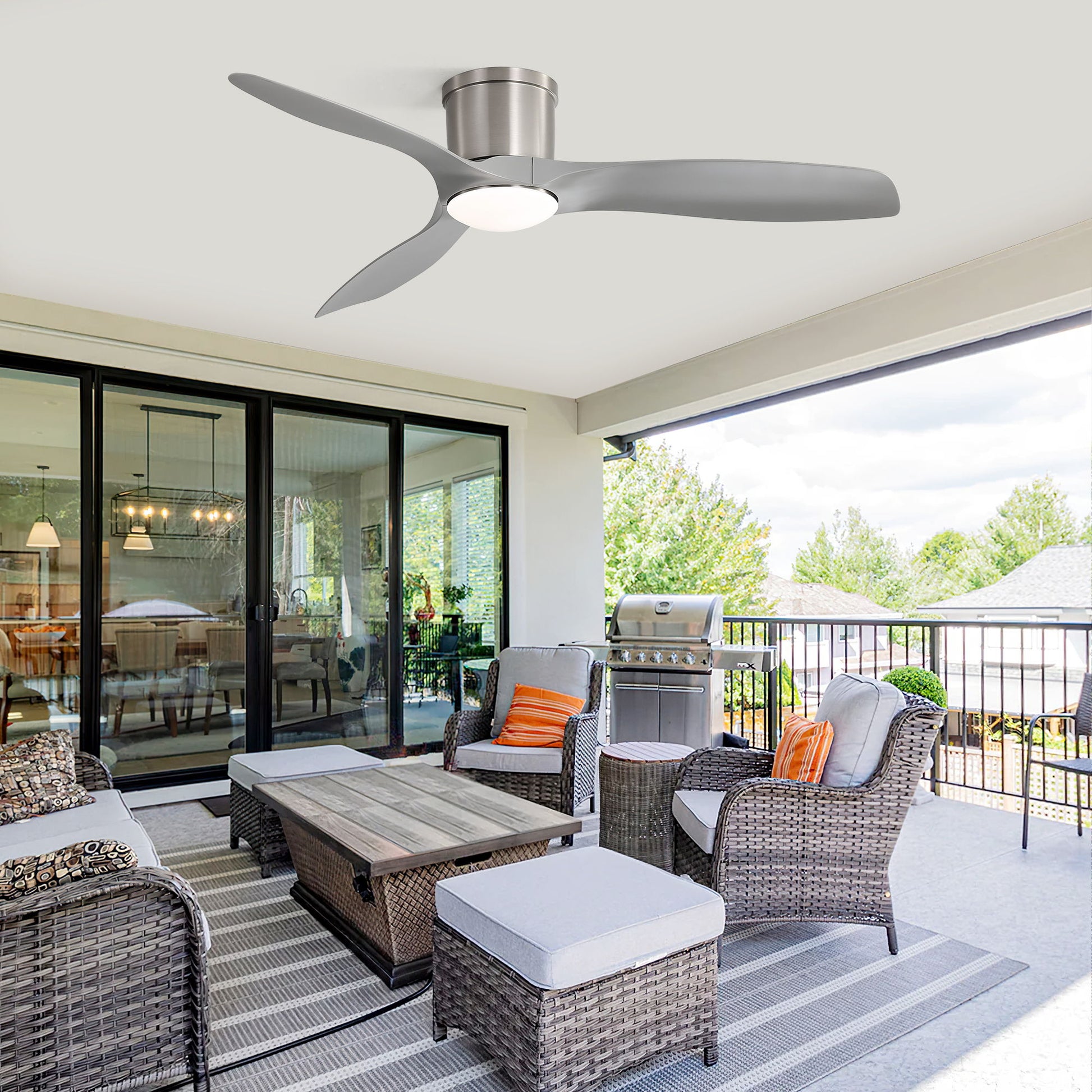 Flush Mount Ceiling Fan With Dimmable LED Light, 3 Blades, Reversible DC Motor Blades For Living Room
