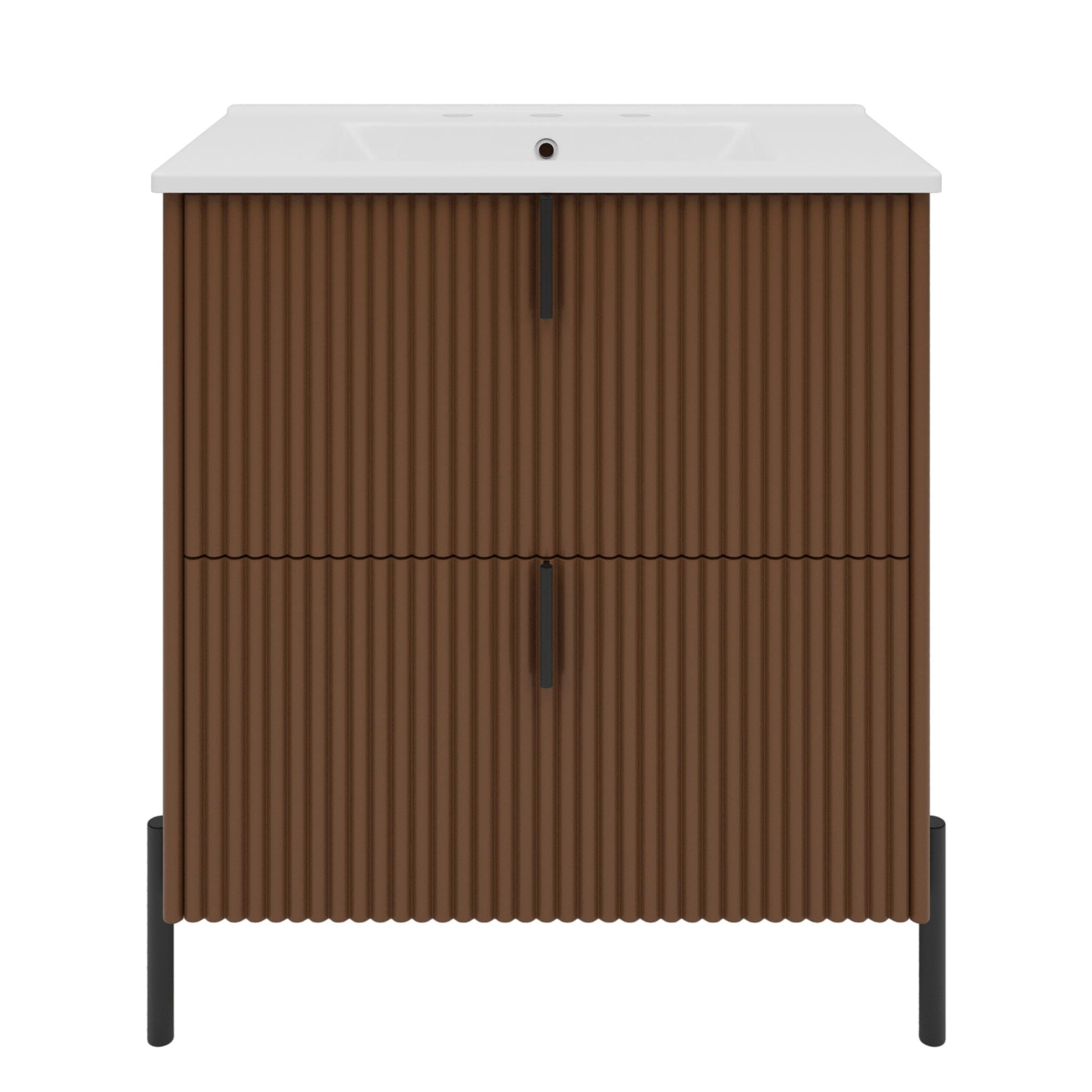 Fluted Bathroom Vanity With Sink, Freestanding Design, Vertical Pulls - Dark Brown