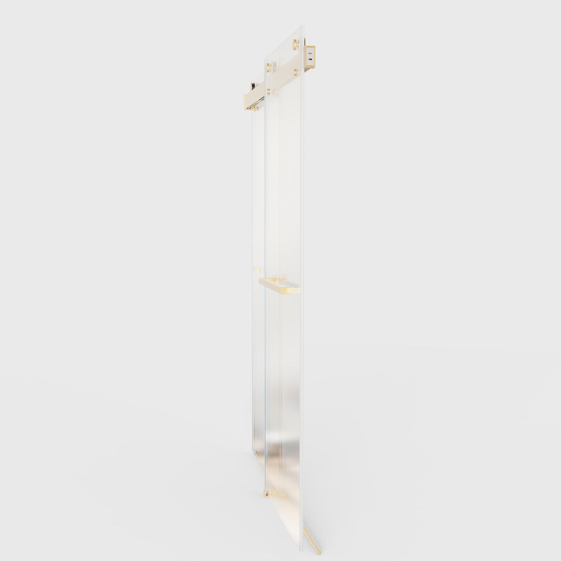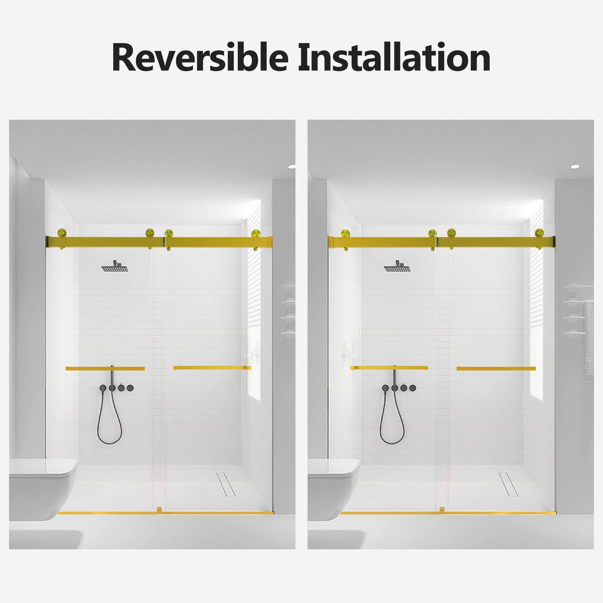 Frameless Double Sliding Soft-Close Shower Door, 3 / 8" Thick SGCC Tempered Glass Door - Brushed Gold