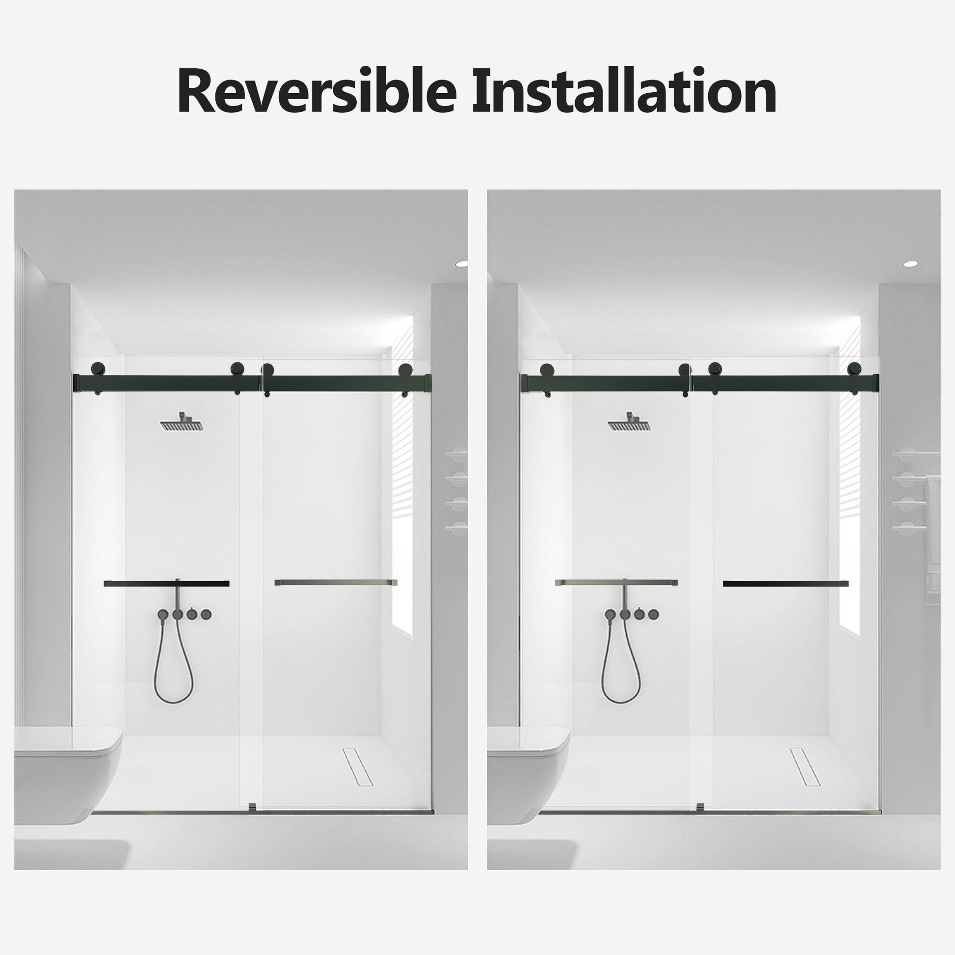 Frameless Double Sliding Soft-Close Shower Door In Matte, 3 / 8" (10Mm) Thick SGCC Tempered Glass Door - Black
