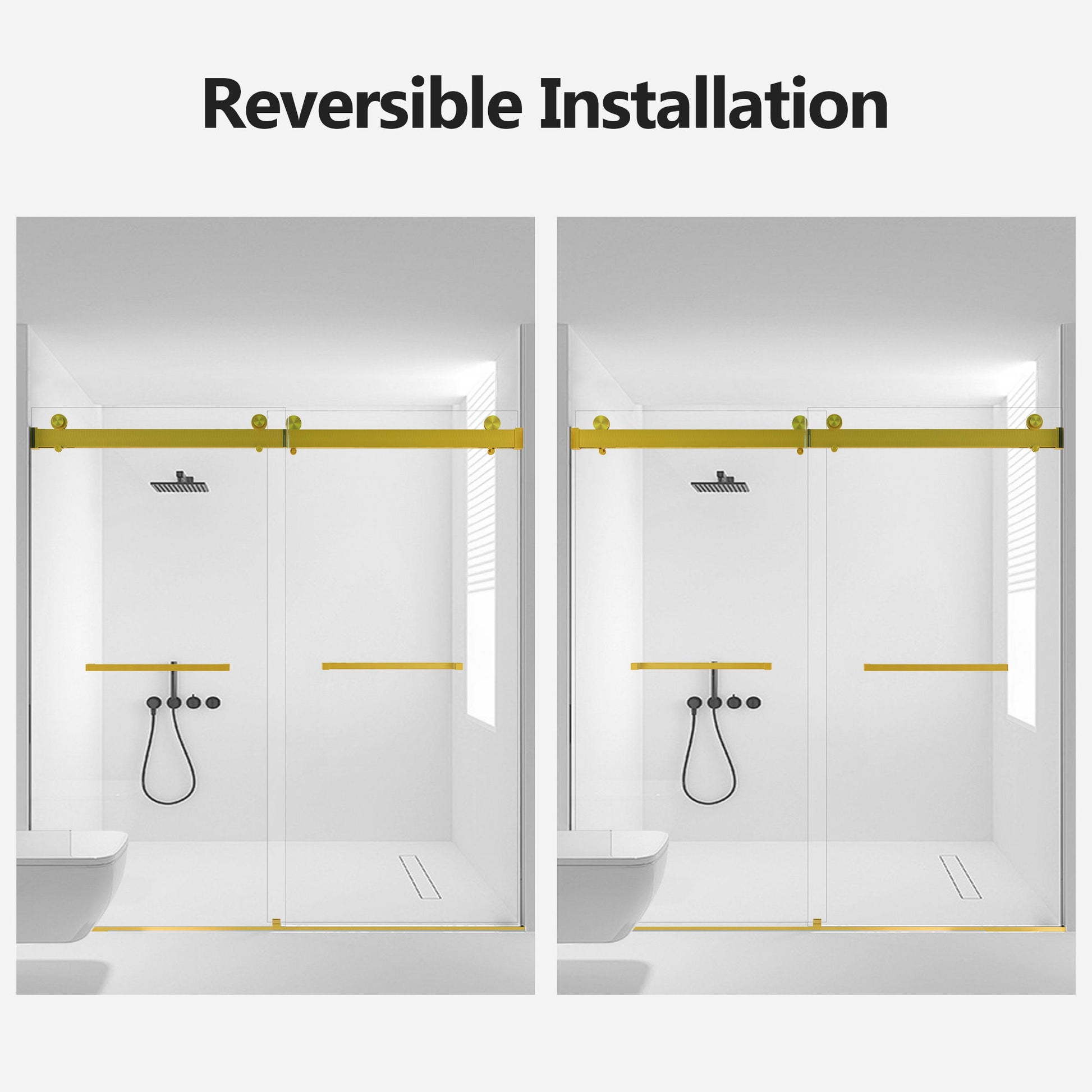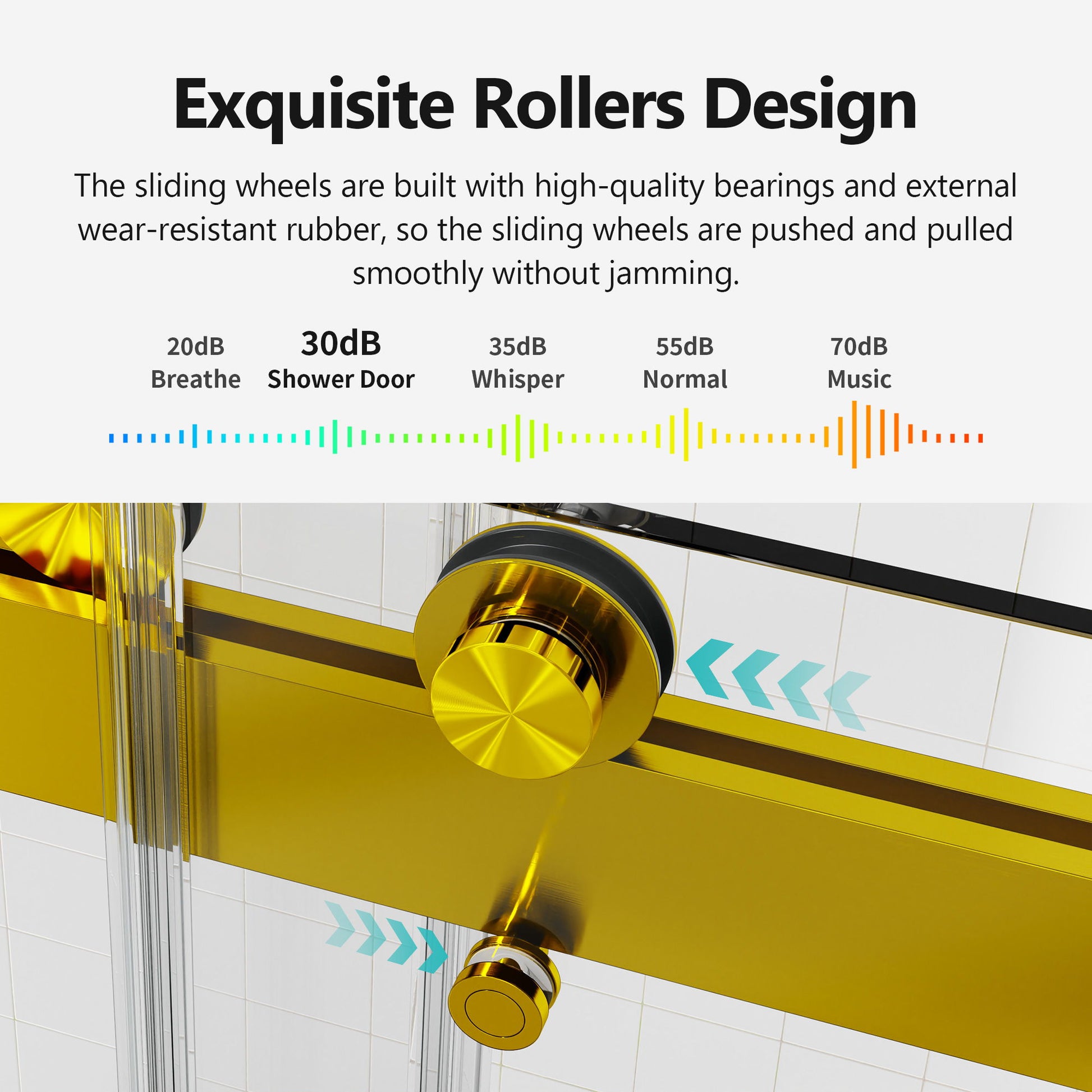 Frameless Double Sliding Soft Close Shower Door - Brushed Gold