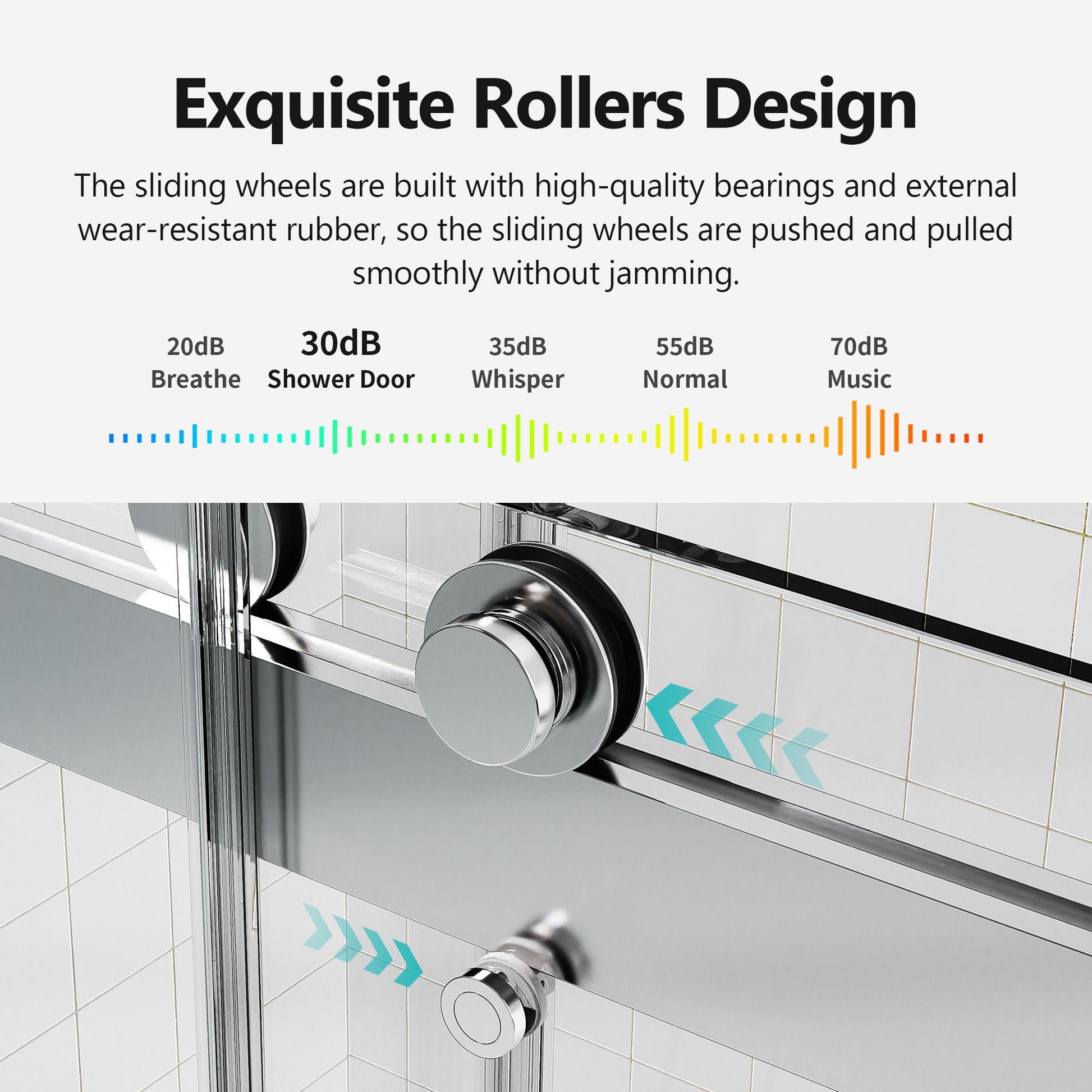 Frameless Double Sliding Soft Close Shower Door, 3 / 8 Inches Tempered Glass - Chrome