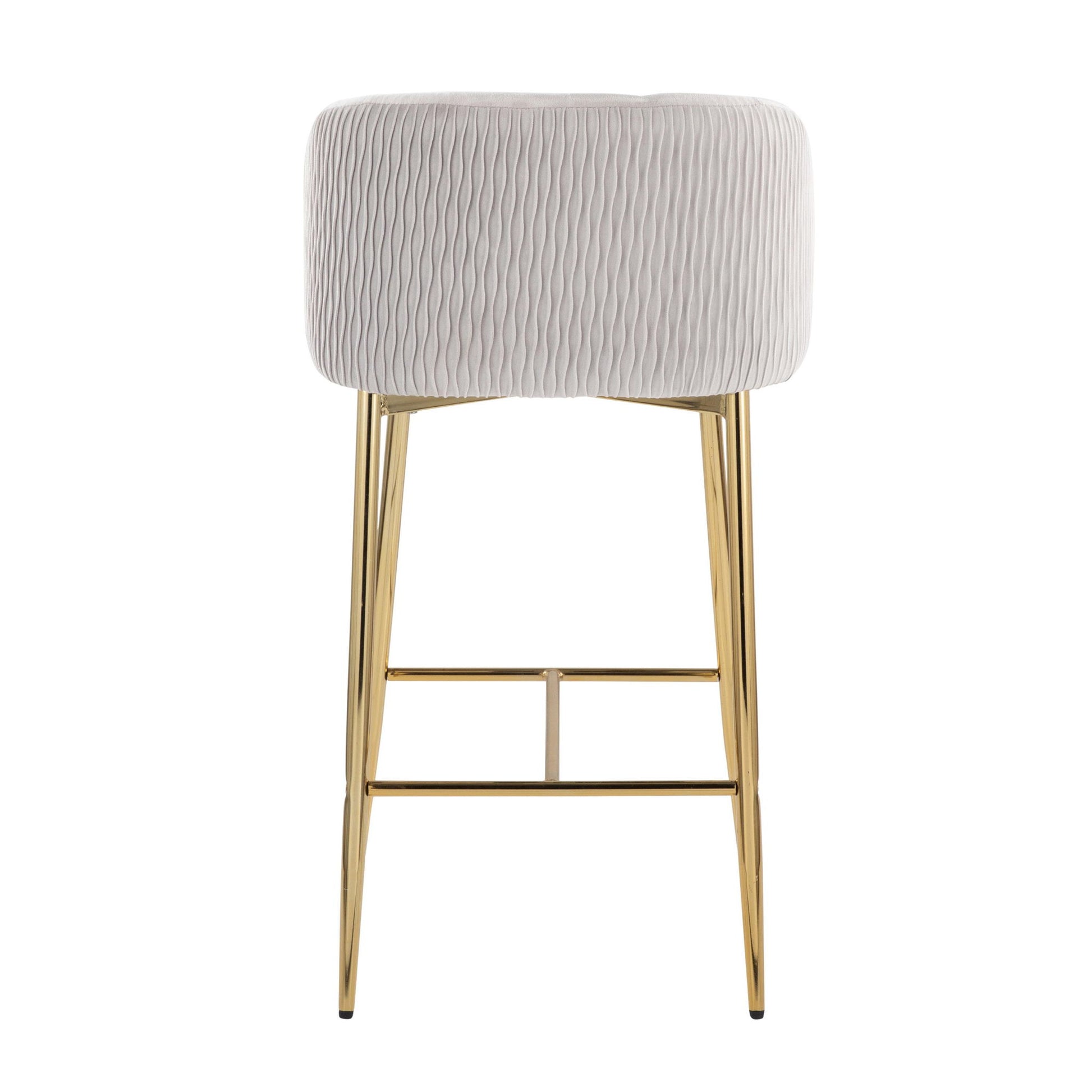Fran - Pleated Waves Contemporary Fixed Height Counter Stool (Set of 2) - Gold / Silver