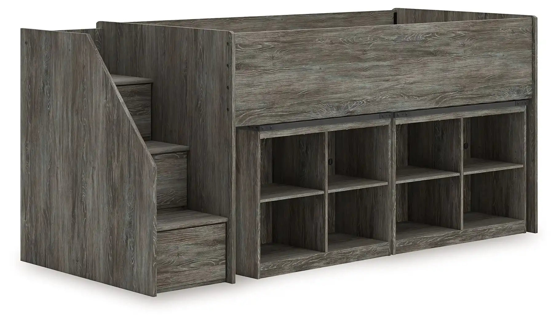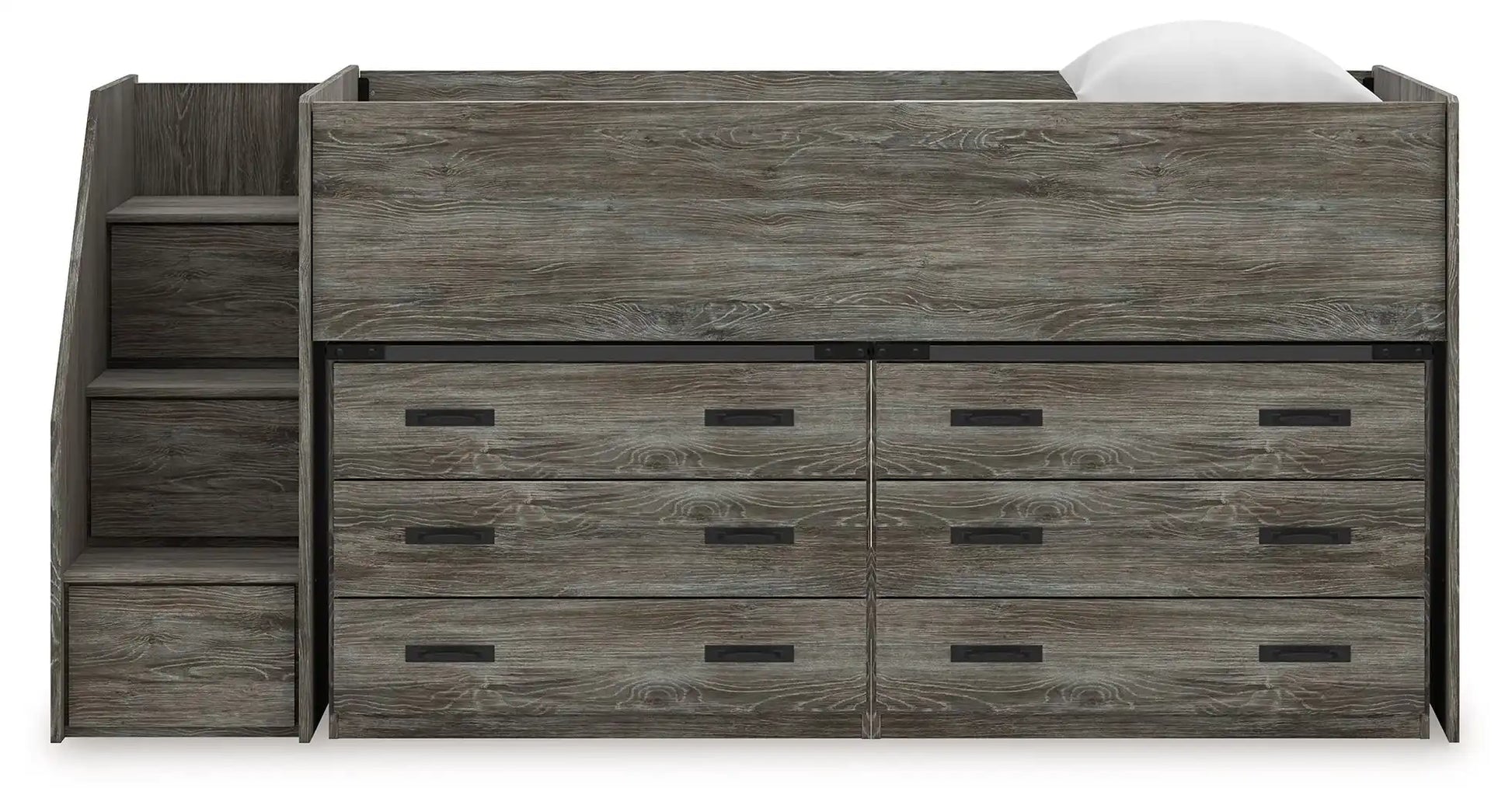 Frandern - Twin Loft Bed With Left Storage Steps - Gray