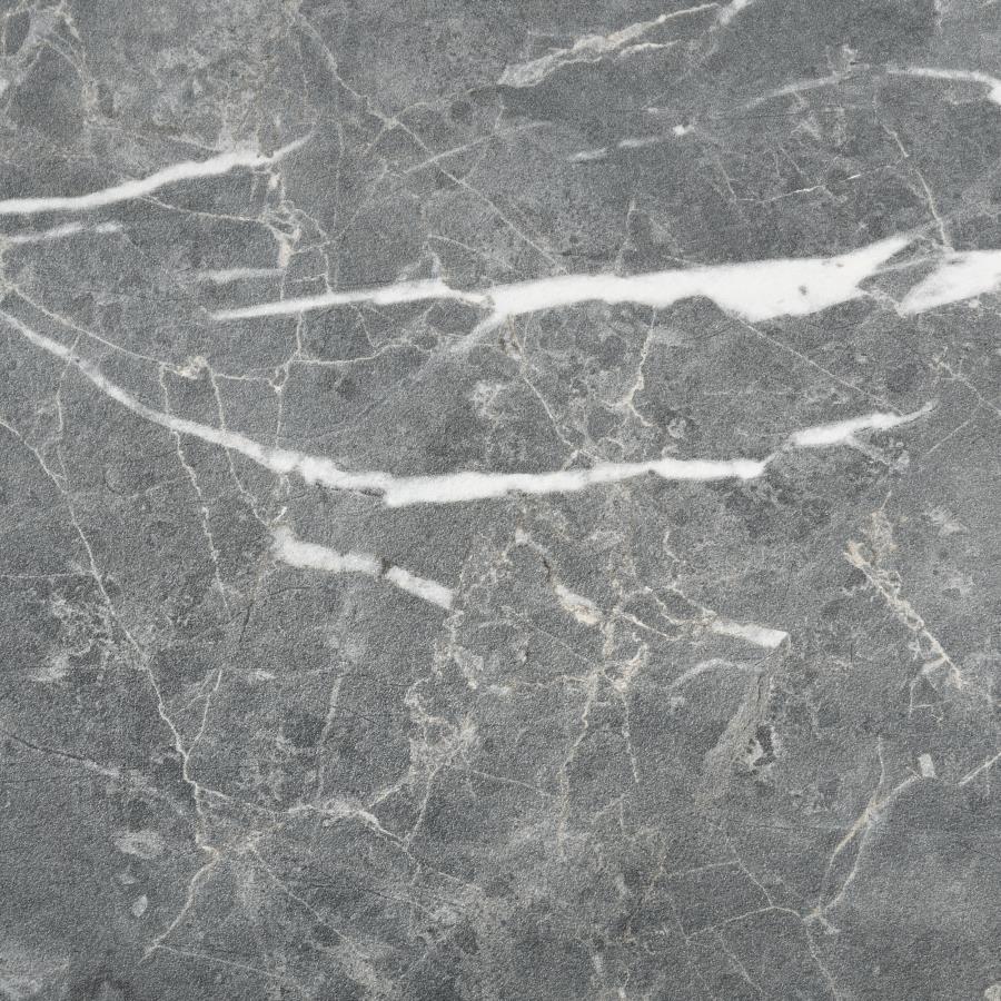 This contemporary dining set balances striking form with practical innovation. The round table showcases a Smart Top surface in faux grey marble, offering heat, scratch, stain, and break resistance for everyday use. Its conical pedestal base in dark oak assembles easily with interlocking panels and metal leaf buckles. Coordinating side chairs feature grey fabric upholstery with diamond-quilted backs, padded seats, and dark oak tapered legs. Crafted from engineered wood and hardwood, this set comfortably seats four to six.