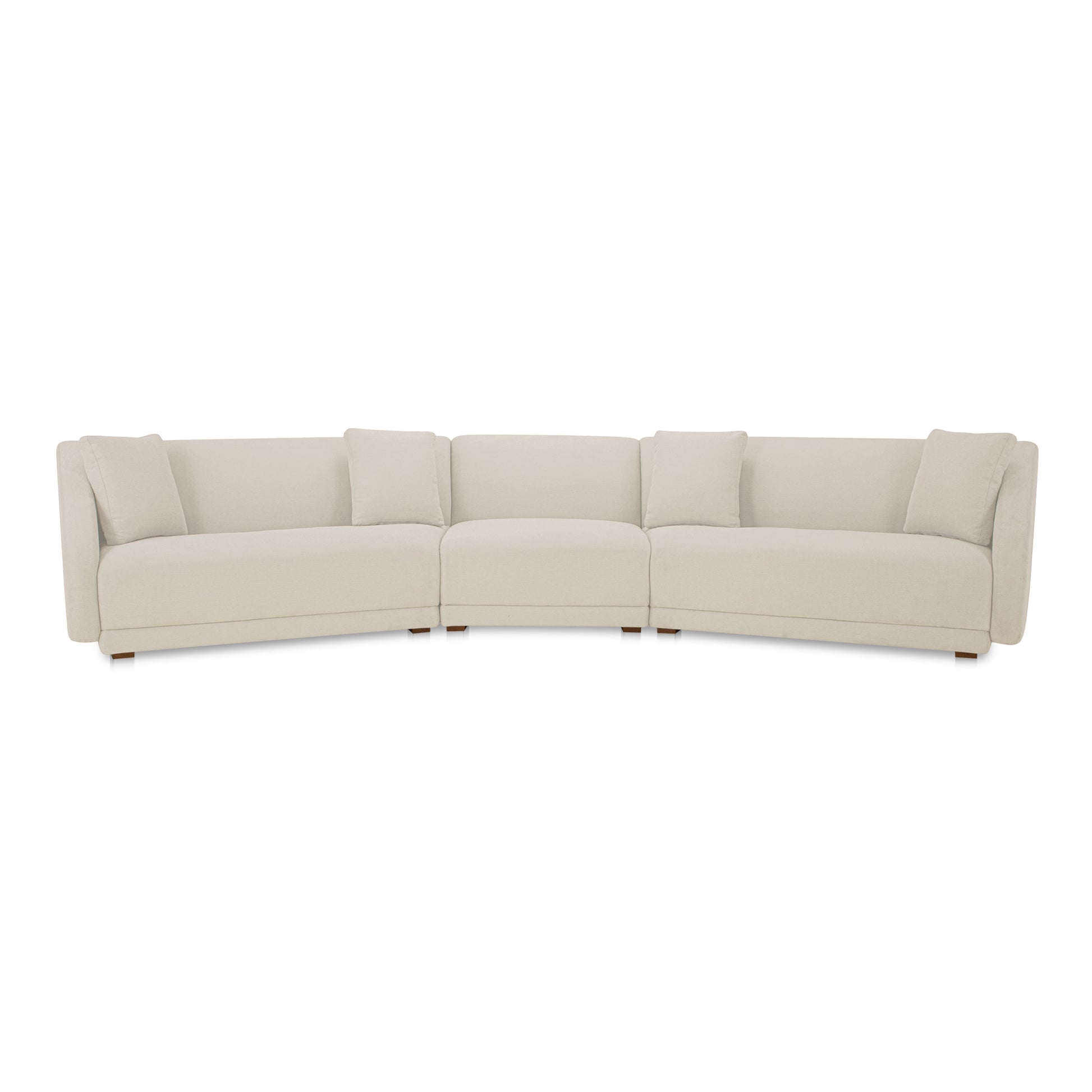 The Fraser sectionals contemporary modular design infuses the elegance of gentle slopes with linear precision, harmoniously merging soft curves and angular forms into its 60s and 70s-inspired aesthetic. Crafted on a minimalist plinth base and upholstered in sumptuous 100% polyester, foam and fiber seating invites serene repose.