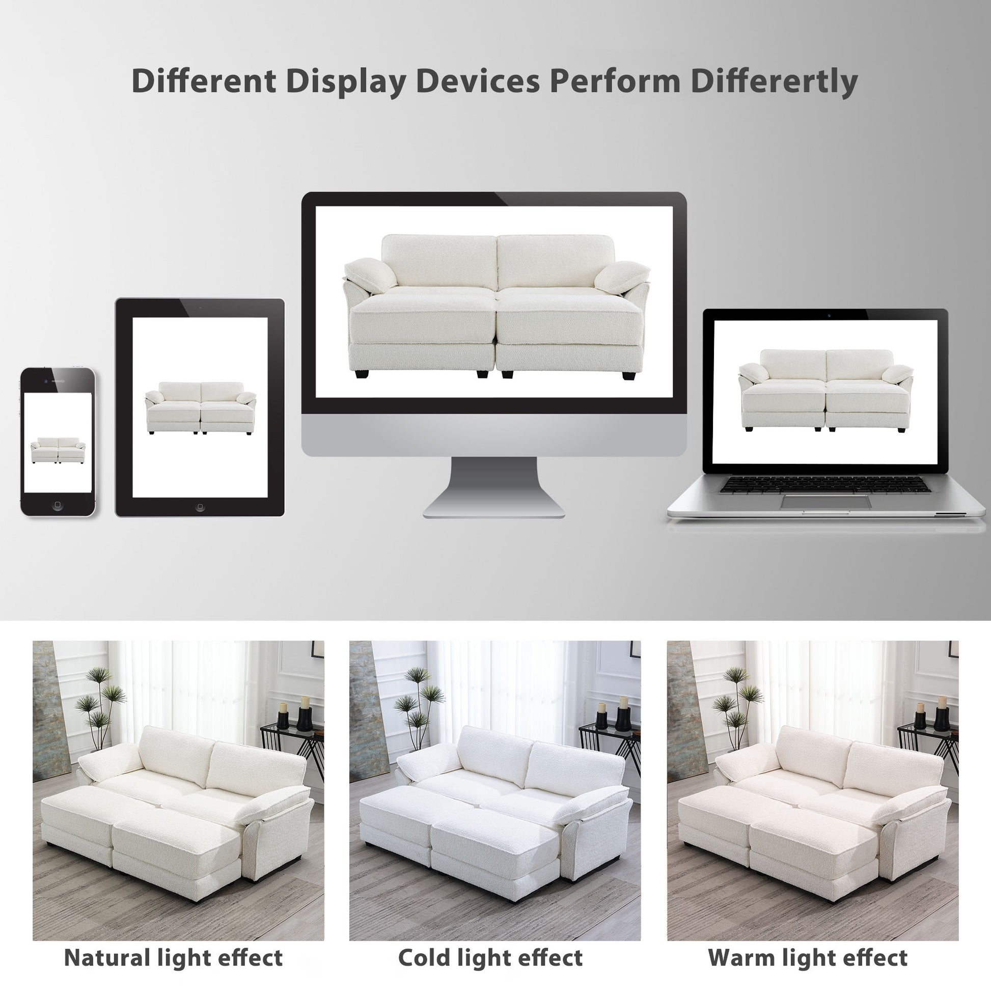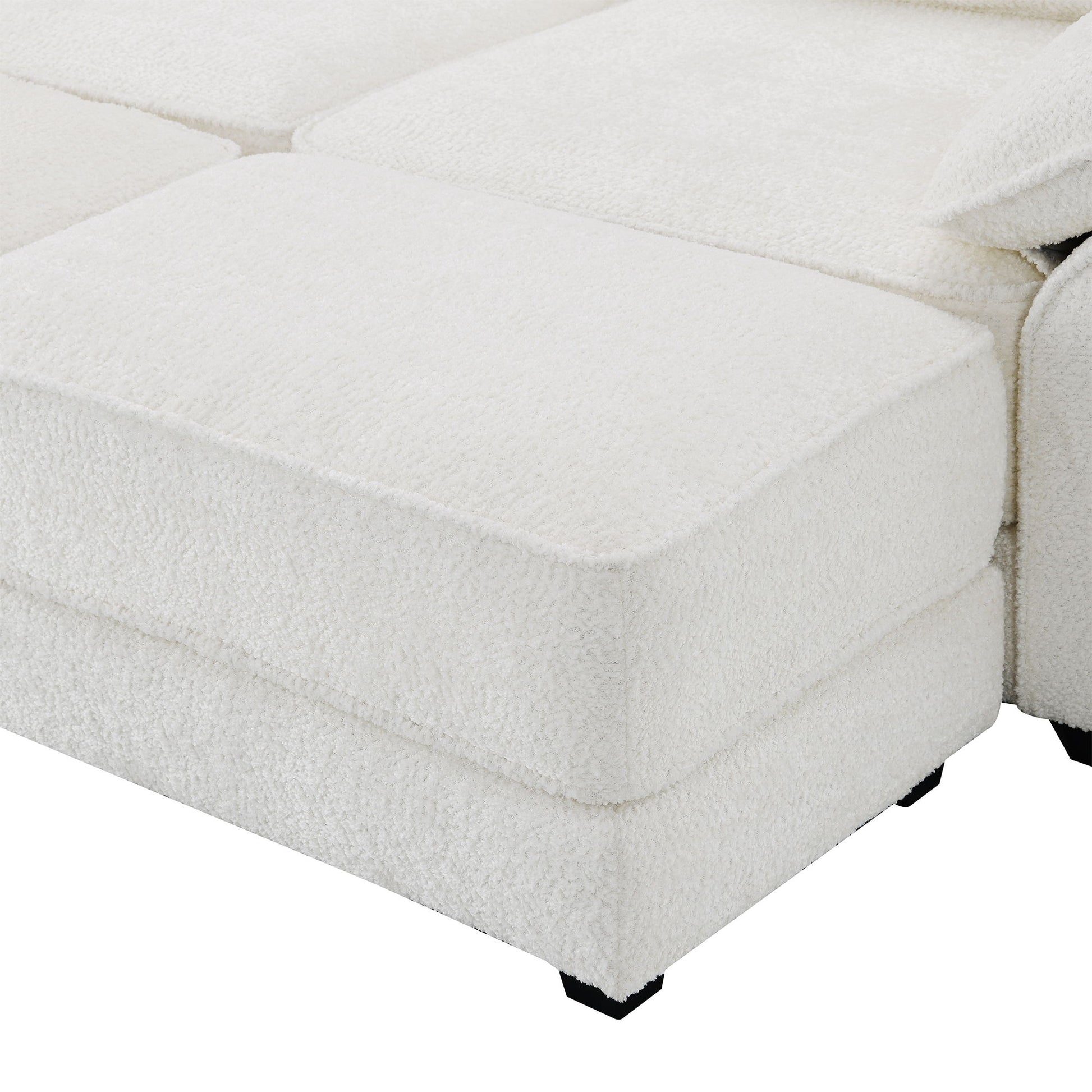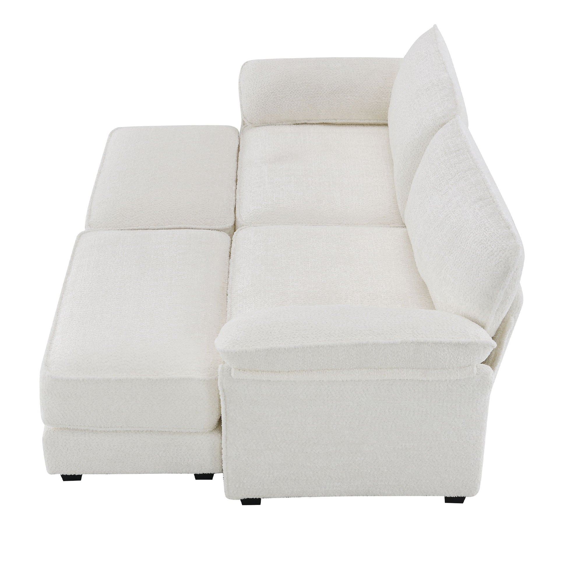 Free Combination Modular Convertible Sectional Sofa Bed Set, 4 Seat Upholstered Sleeper Corner Couch, Deep Seat Loveseat With Ottoman - White