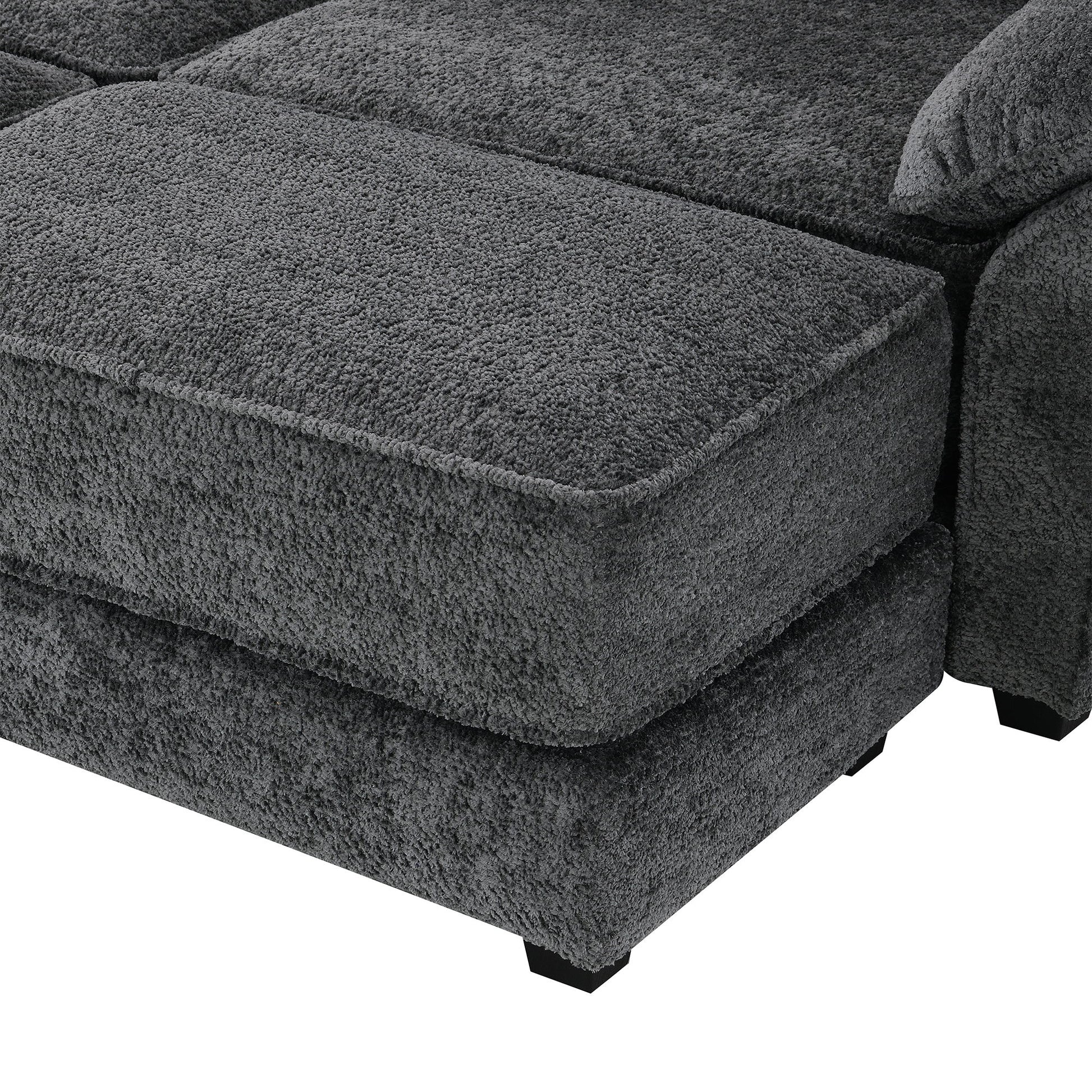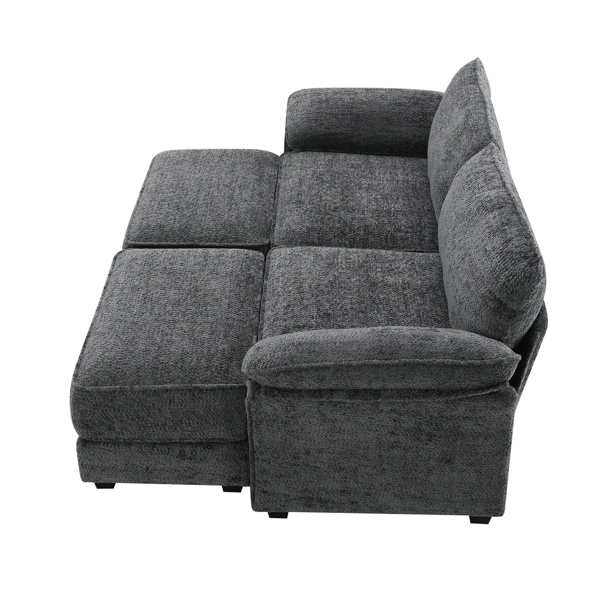 Free Combination Modular Convertible Sectional Sofa Bed Set, 4 Seat Upholstered Sleeper Corner Couch, Deep Seat Loveseat With Ottoman - Gray