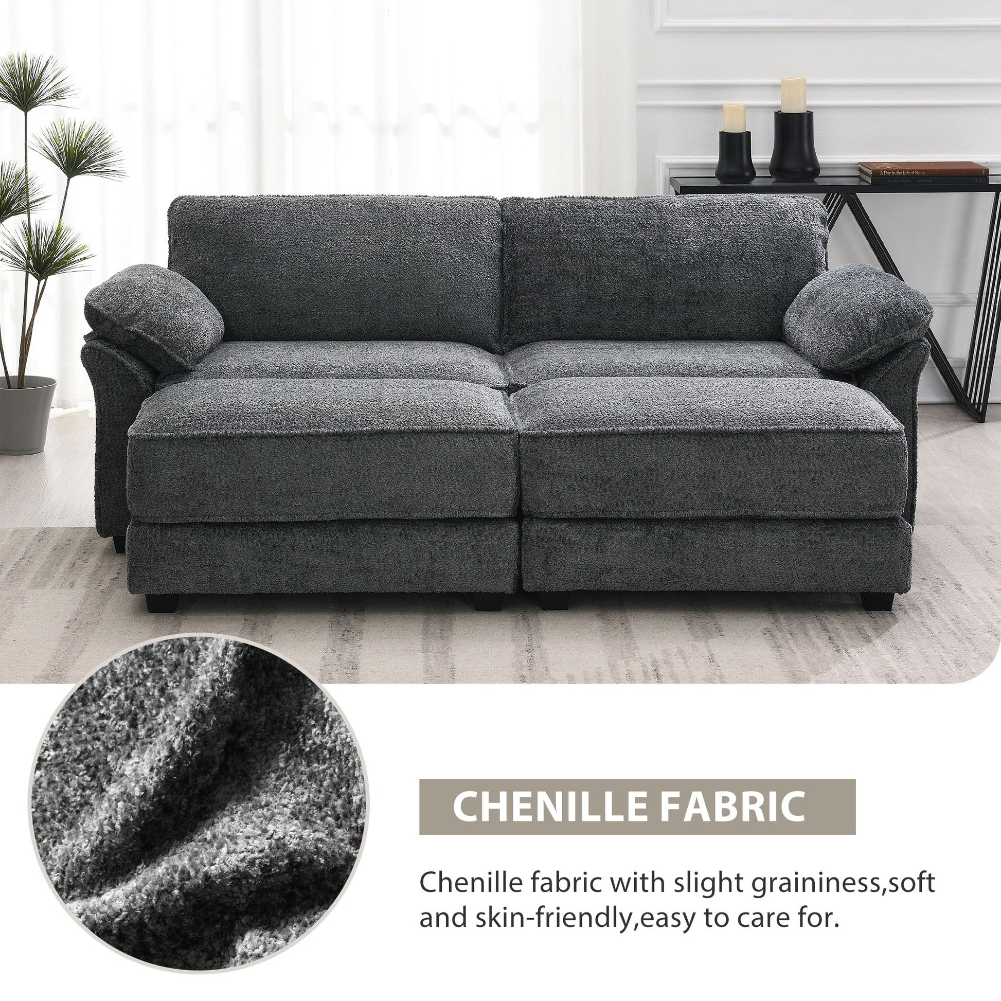 Free Combination Modular Convertible Sectional Sofa Bed Set, 4 Seat Upholstered Sleeper Corner Couch, Deep Seat Loveseat With Ottoman For Living Room, Office, Apartment