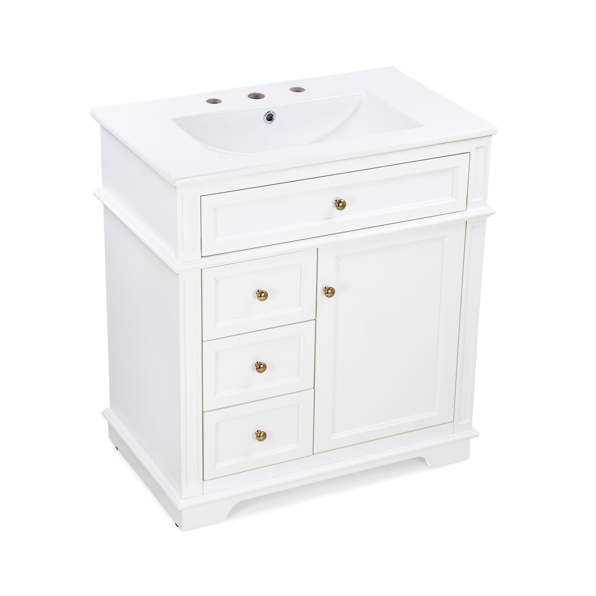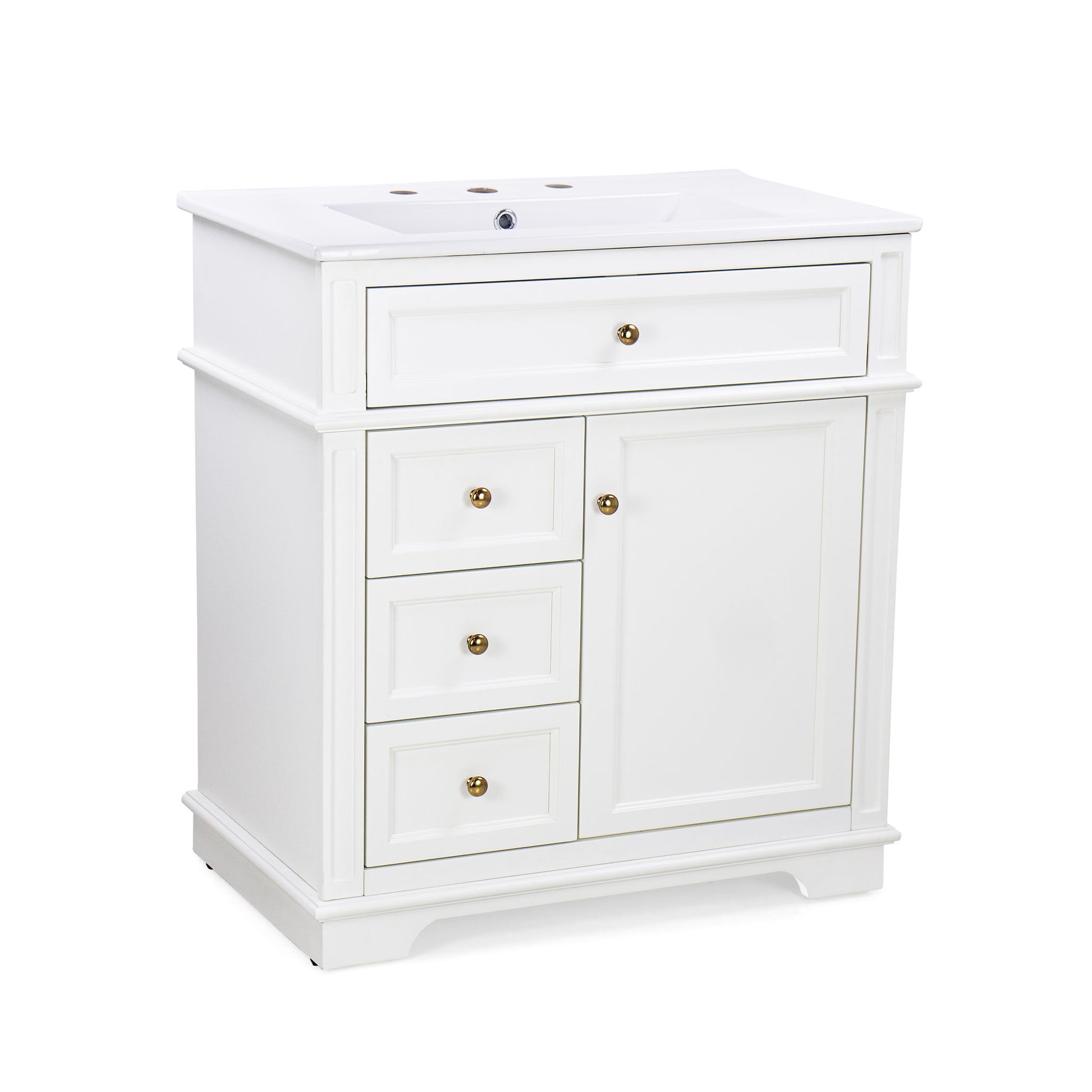 Freestanding 30" Bathroom Vanity With Sink, Soft Closing Door, Tip Out Drawer - White