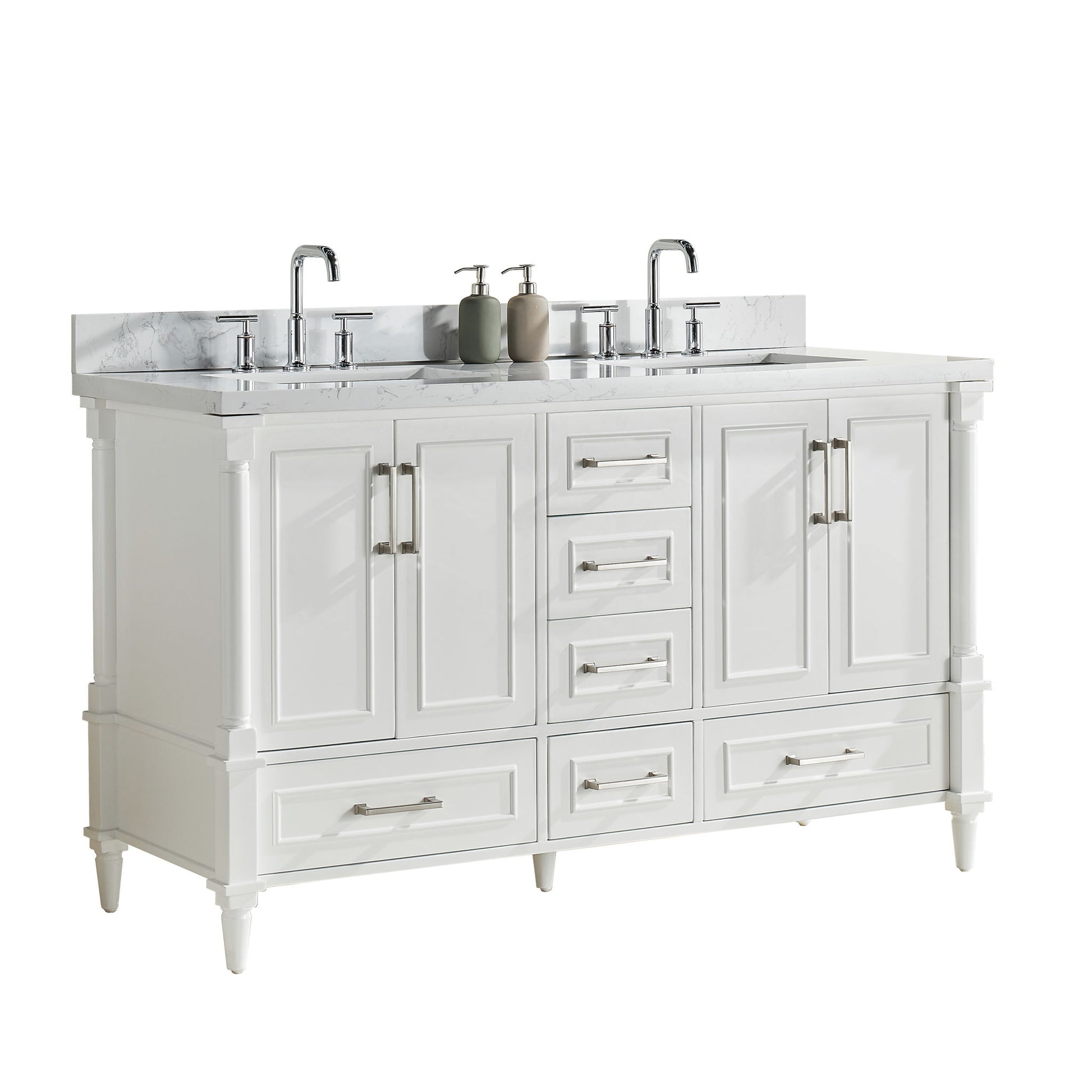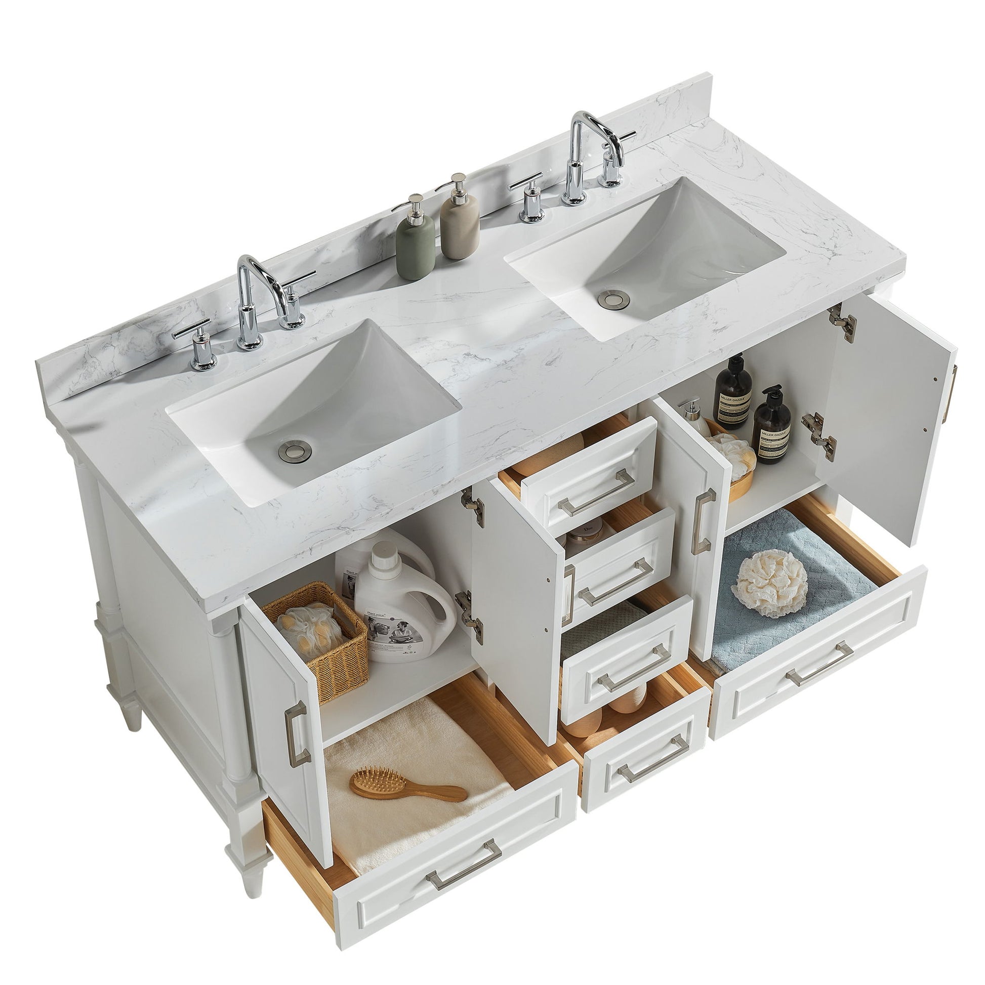 Freestanding Double Bathroom Vanity With Extra Black Handles - White