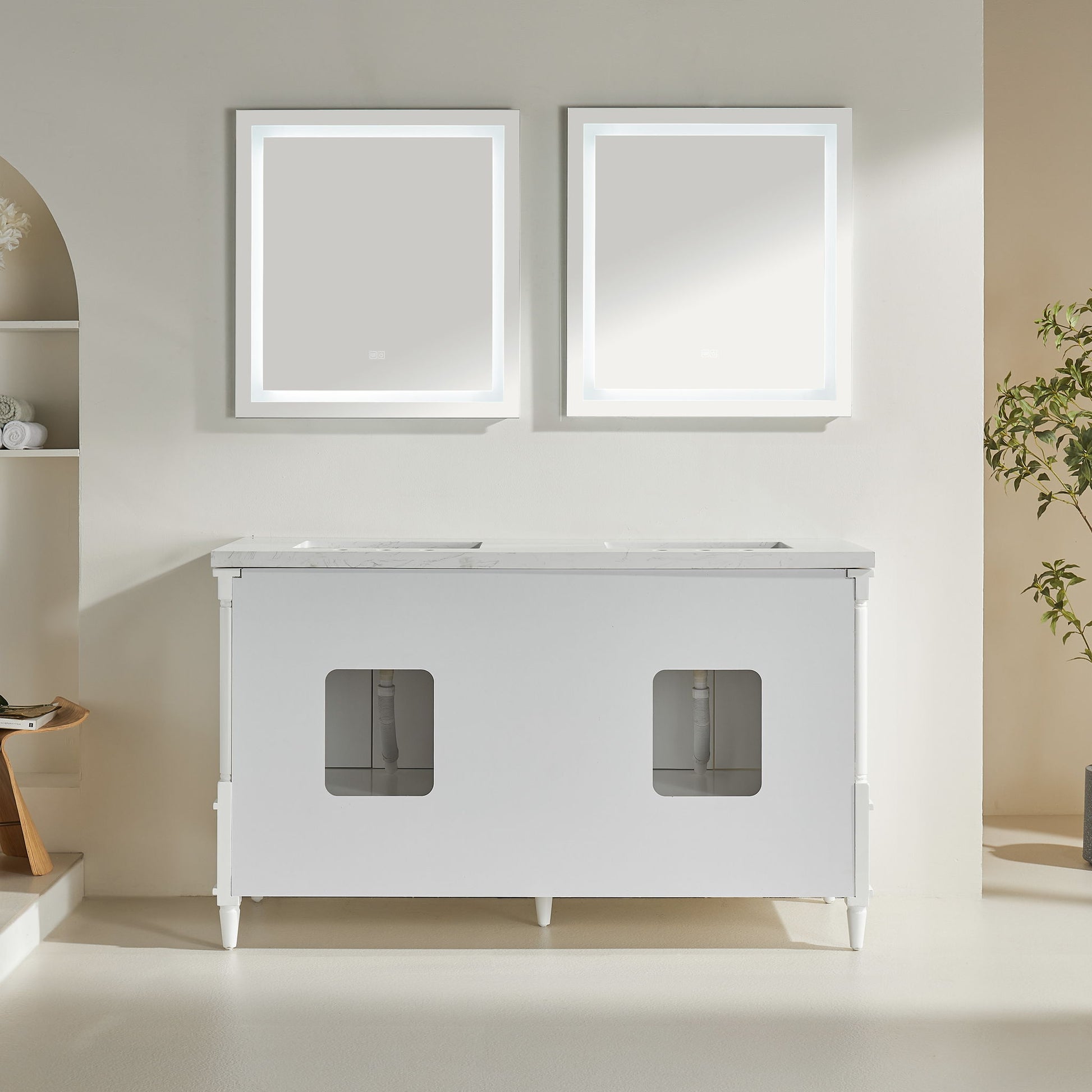 - Fully Assembled: The vanity comes fully assembled with a generously sized plumbing cutout for easy installation.