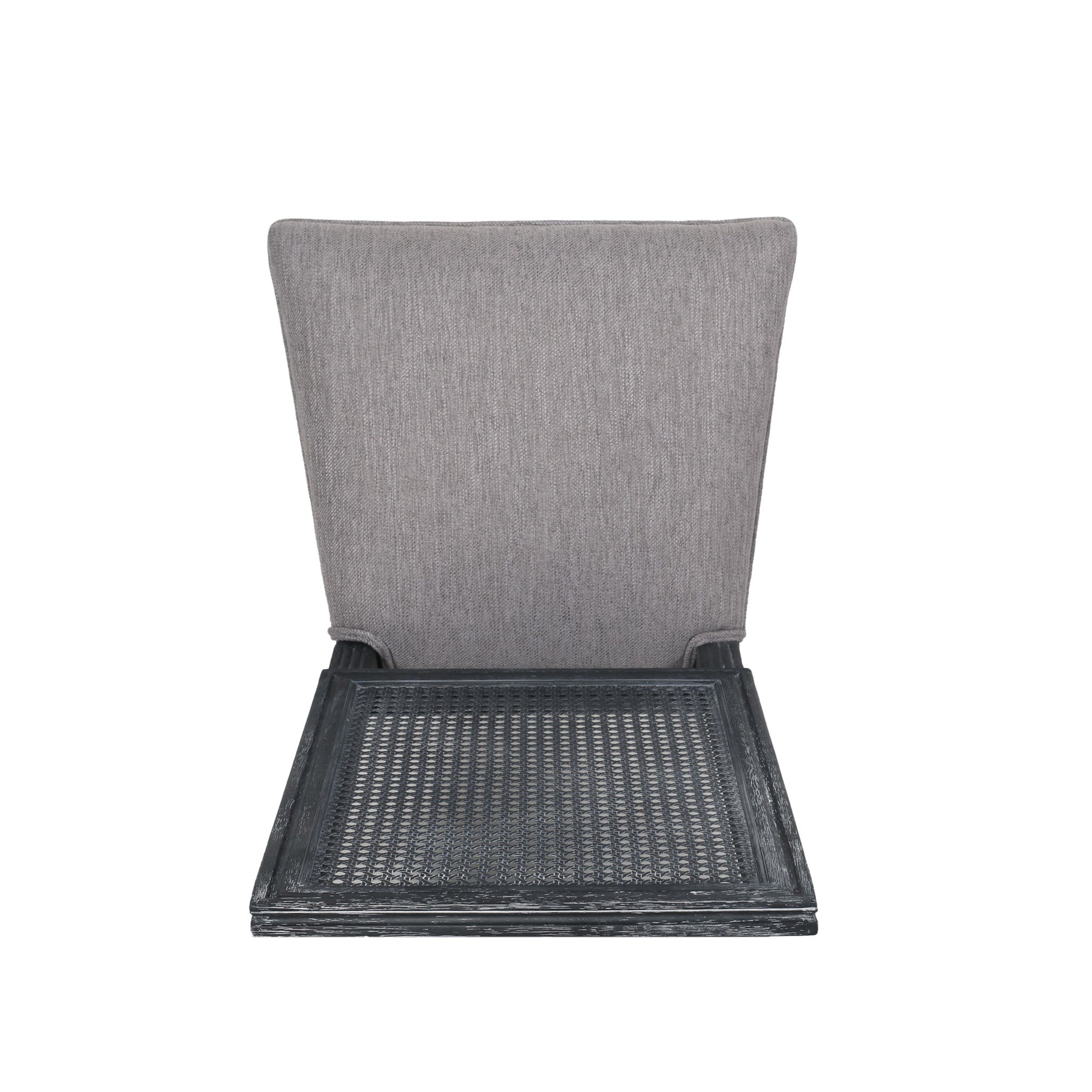 French Country Dining Chair With Rectangular Cane Backrest And Smooth Upholstered Seating