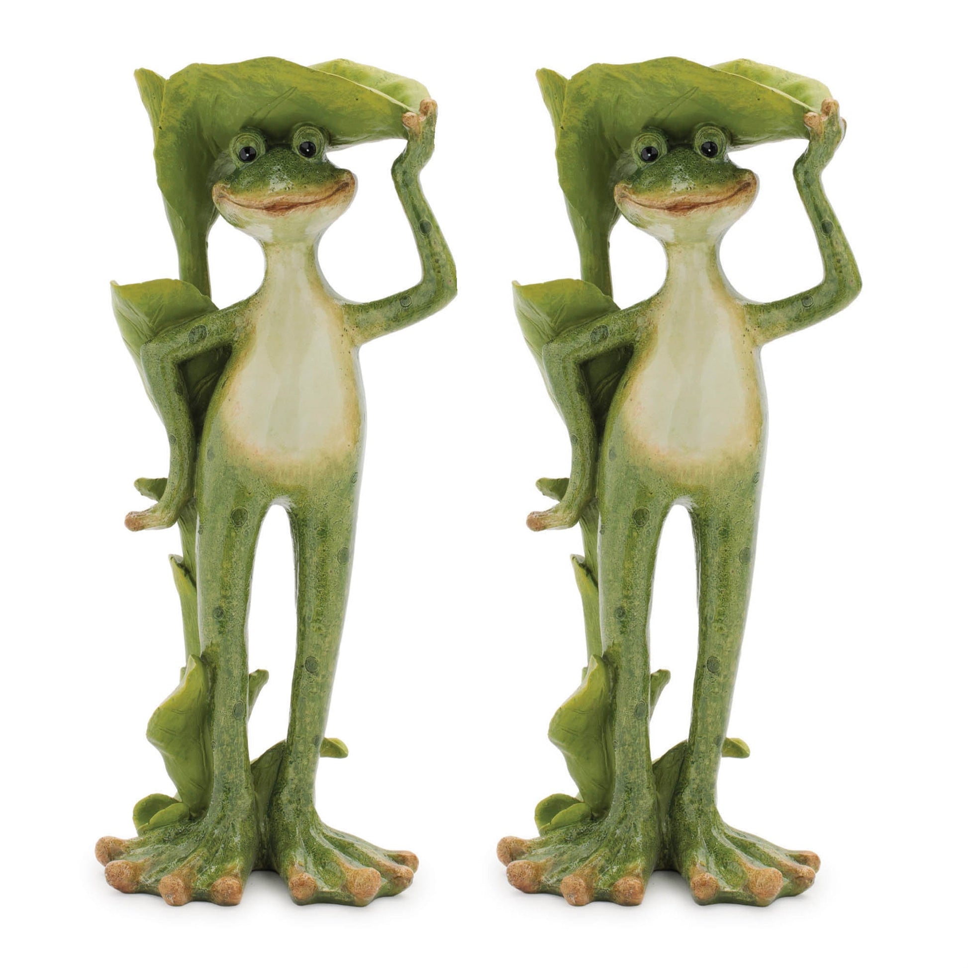 Crafted from durable polyresin, these statues are designed to withstand the elements and can be easily spot or wipe cleaned. The fun and whimsical design of the frogs perched on leaves will create a lighthearted and inviting atmosphere in your garden. The leaf also serves as a birdbath, making it perfect for attracting feathered friends and adding functional beauty to your outdoor space.