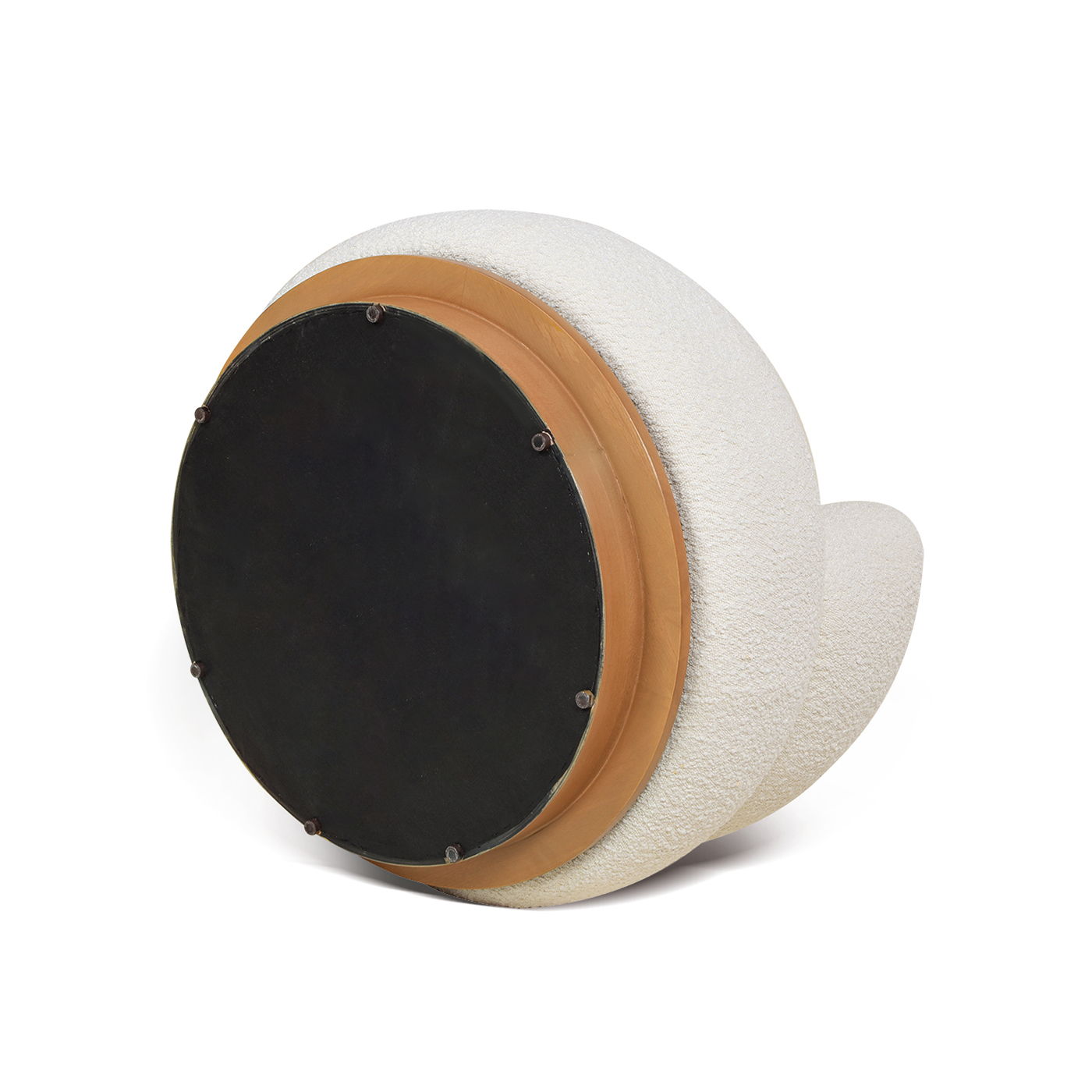 - Textured Upholstery: The chair features a boucle upholstery, which is a faux sheepskin, sherpa-like fabric that provides a dimensional texture, adding depth and style to any room.