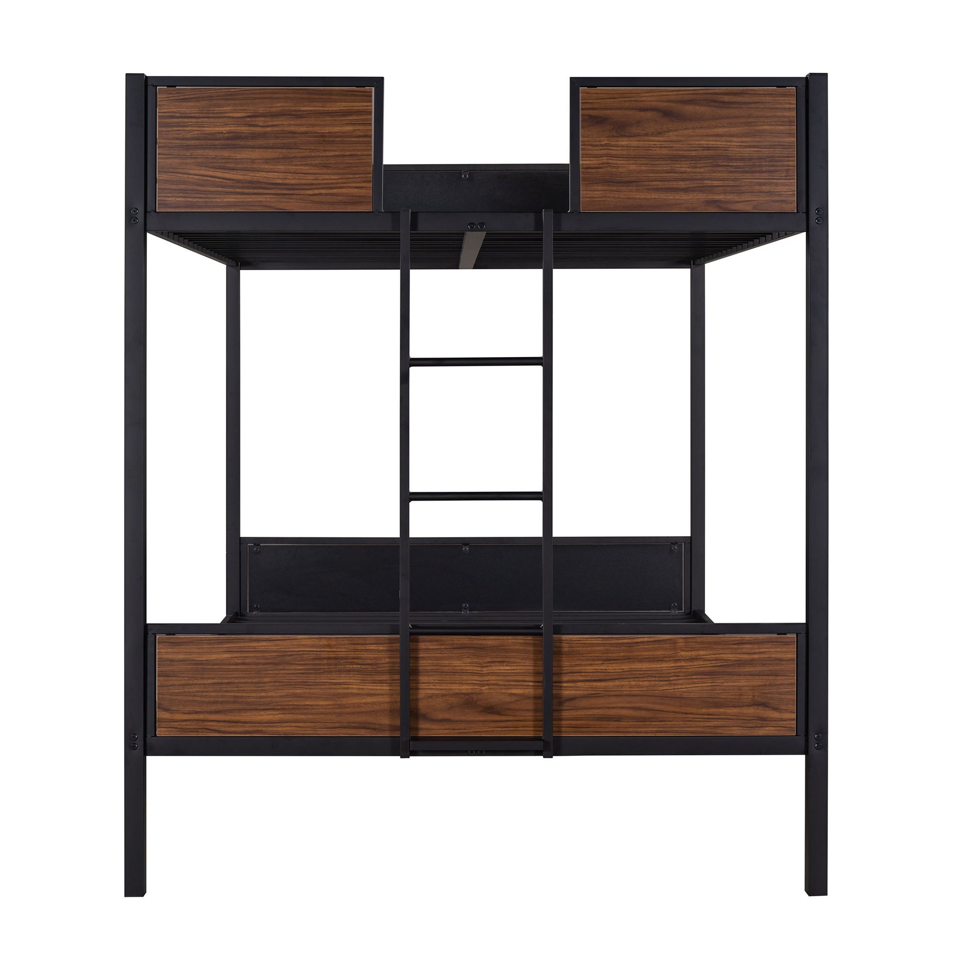Full Over Full Bunk Bed Modern Style Steel Frame Bunk Bed With Safety Rail, Built-In Ladder For Bedroom - Brown