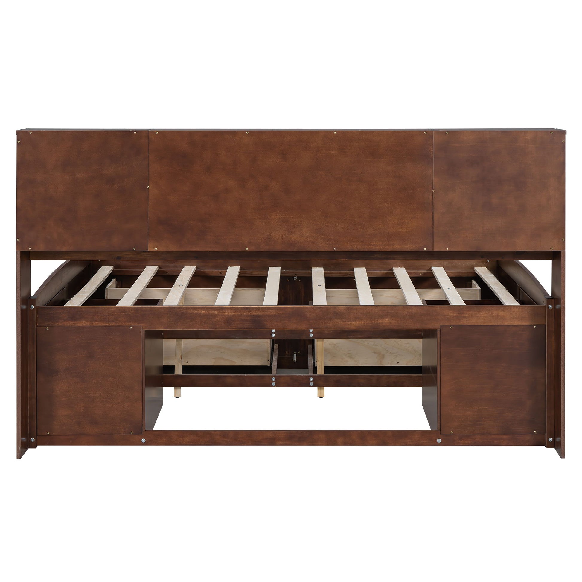 Full Size Captain Bed With Built In Storage Shelves, 4 Drawers And 2 Cabinets - Antique Brown