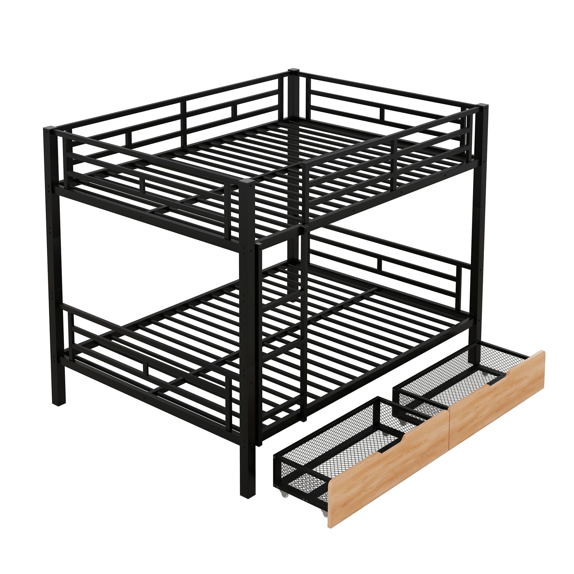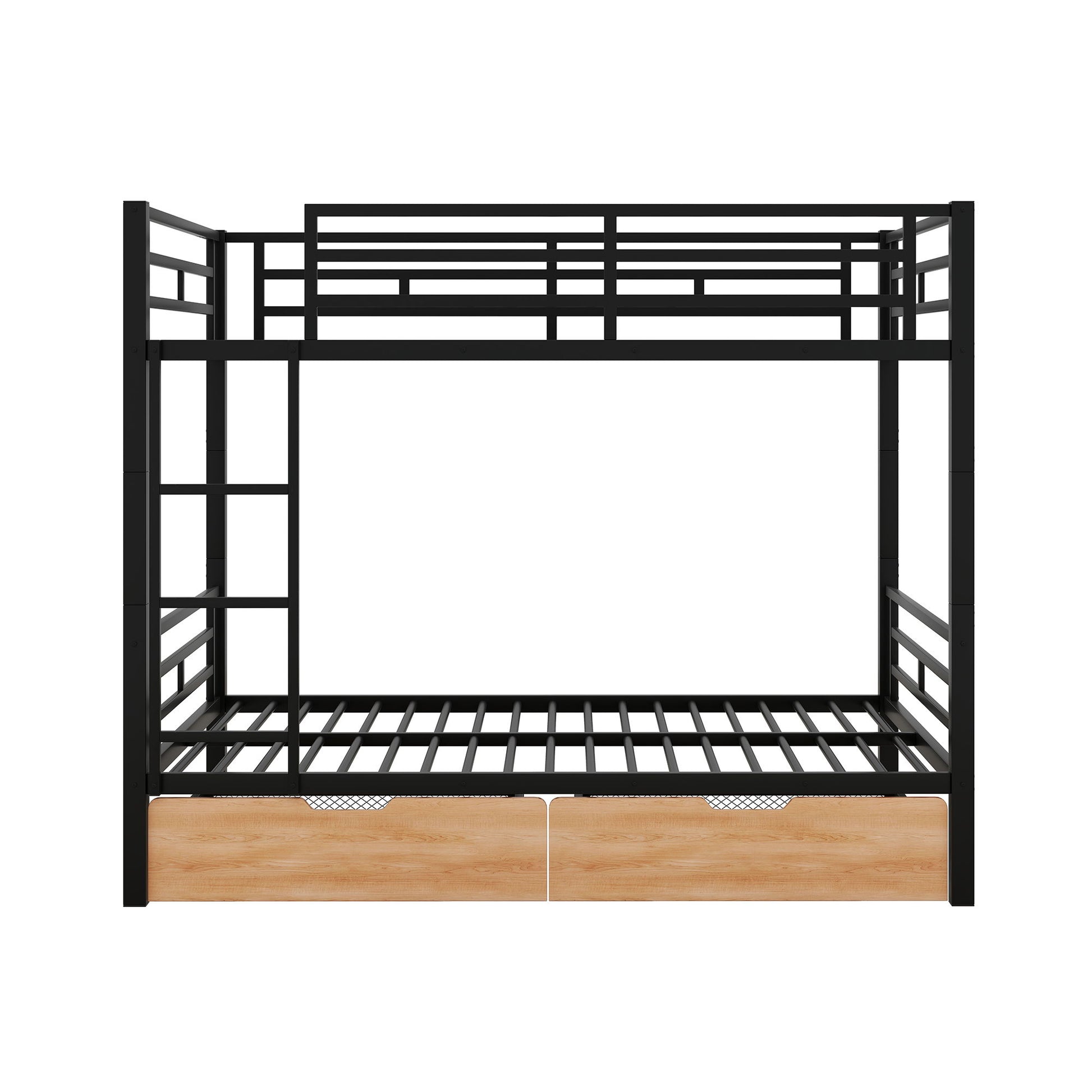 Full Size Convertible Bunk Bed With 2 Drawers Durable - Black
