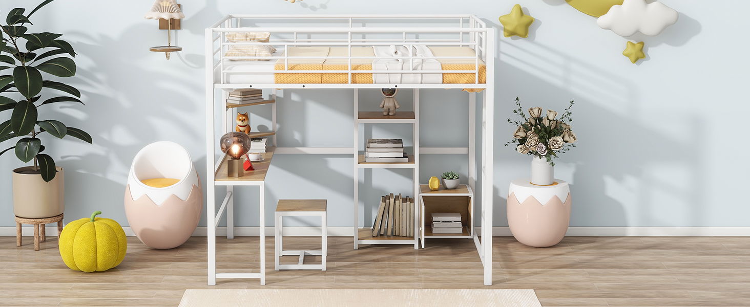 Versatile Use: This loft bed comes with a stylish desk and stool, providing a multifunctional space for reading, homework, and leisure activities. It encourages creativity and independence, making it an ideal choice for various activities.