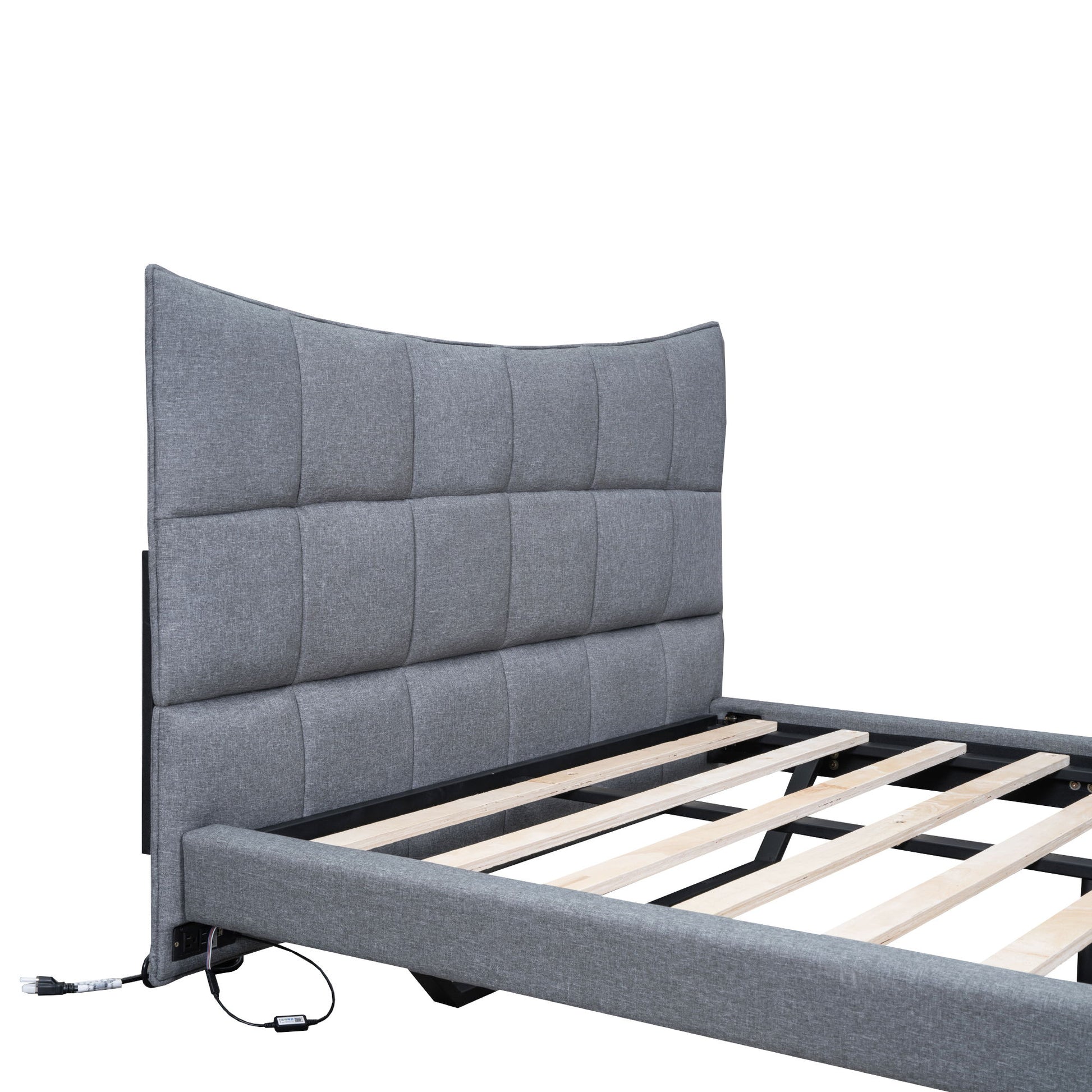 Full Size Upholstered Platform Bed With LED Lights, USB Ports And Outlets - Gray