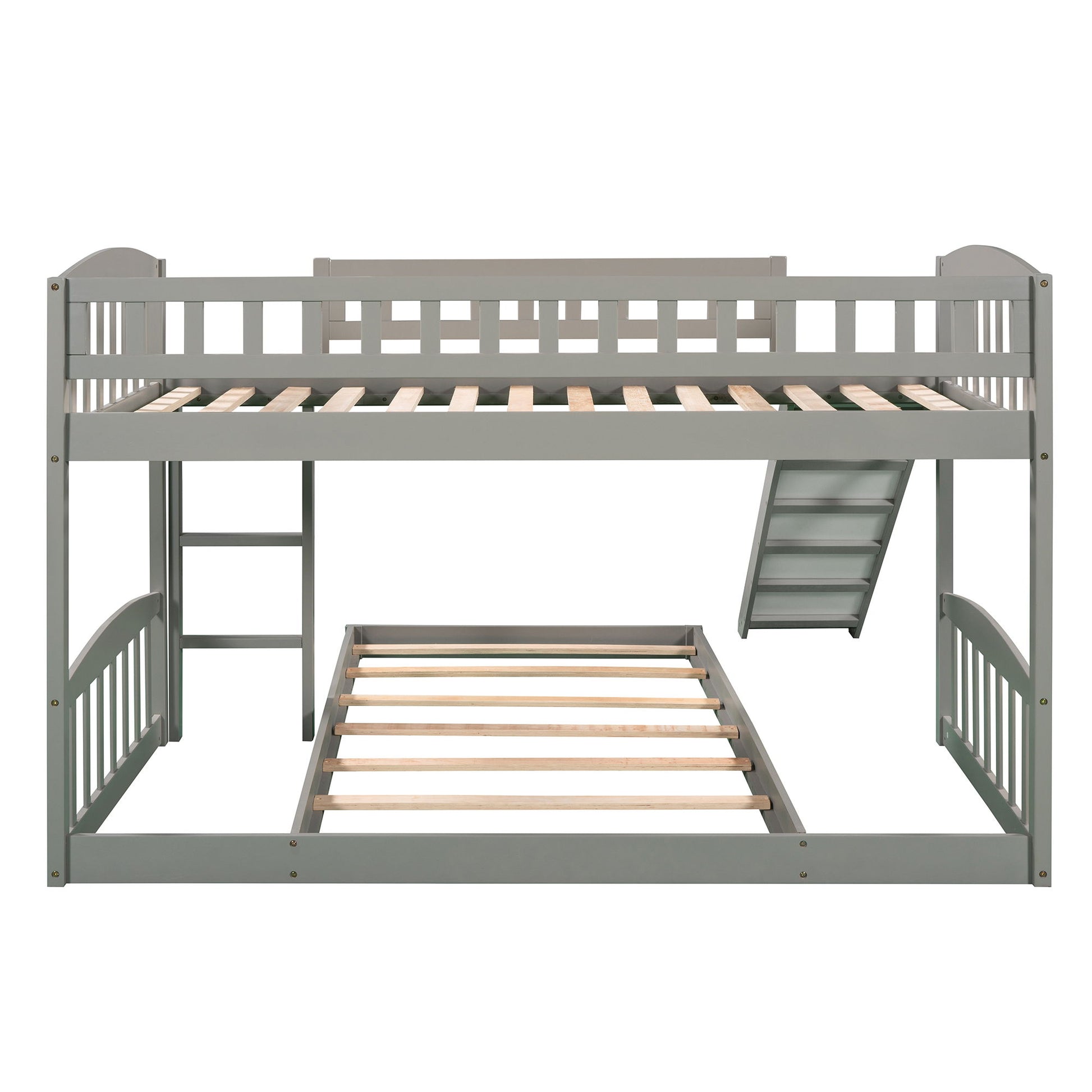 Twin Over Twin Bunk Bed & Slide And Ladder - Gray