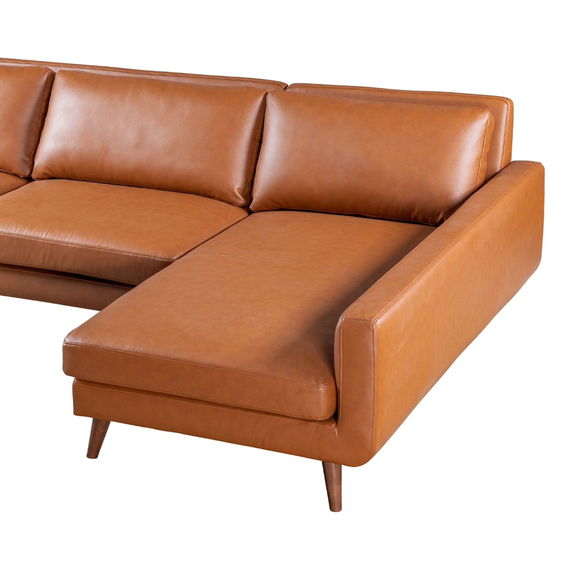 - Design & Style: The Garland Cognac Vegan Leather Sectional Sofa showcases a Mid-Century Modern design, offering a timeless and elegant aesthetic that complements a variety of interior styles.