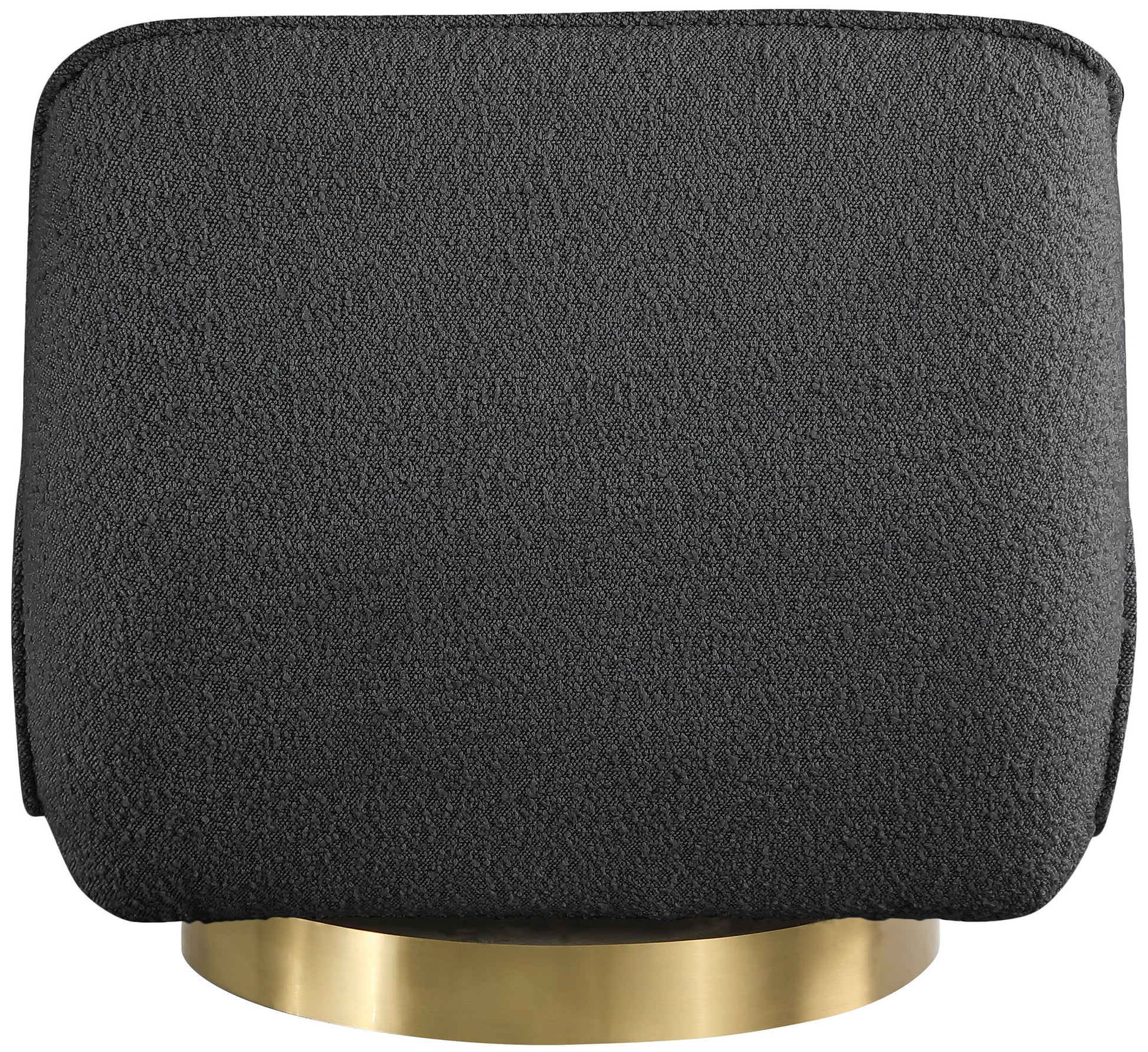 Have a seat and get cozy with this Geneva swivel chair that's upholstered in rich boucle fabric. Its padded seat makes it ultra-comfortable, and its solid wood frame provides ample lumbar support. Its brushed gold metal base adds a dash of complementary color, and its swivel chair design makes it a fun piece to relax on. This contemporary accent chair is the perfect addition for any modern living space, and is sure to draw eyes when you have guests visiting.