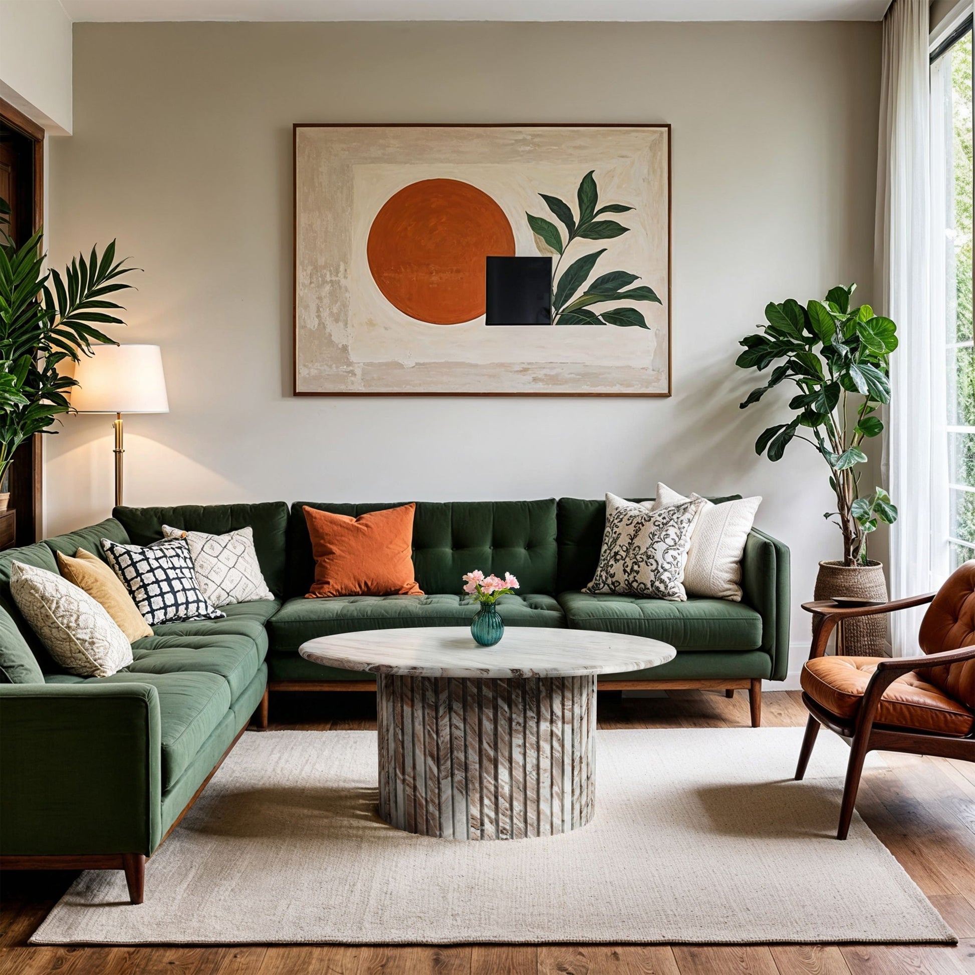 Brighten your domain with the Genoa brown toronto marble table, a stunning handcrafted piece made from genuine marble. This luxurious table features a beautiful wavy multi-colored pattern with brown and white that add depth and sophistication to any room. The fluted marble base provides a unique, textured touch, combining style and durability in one exquisite design.