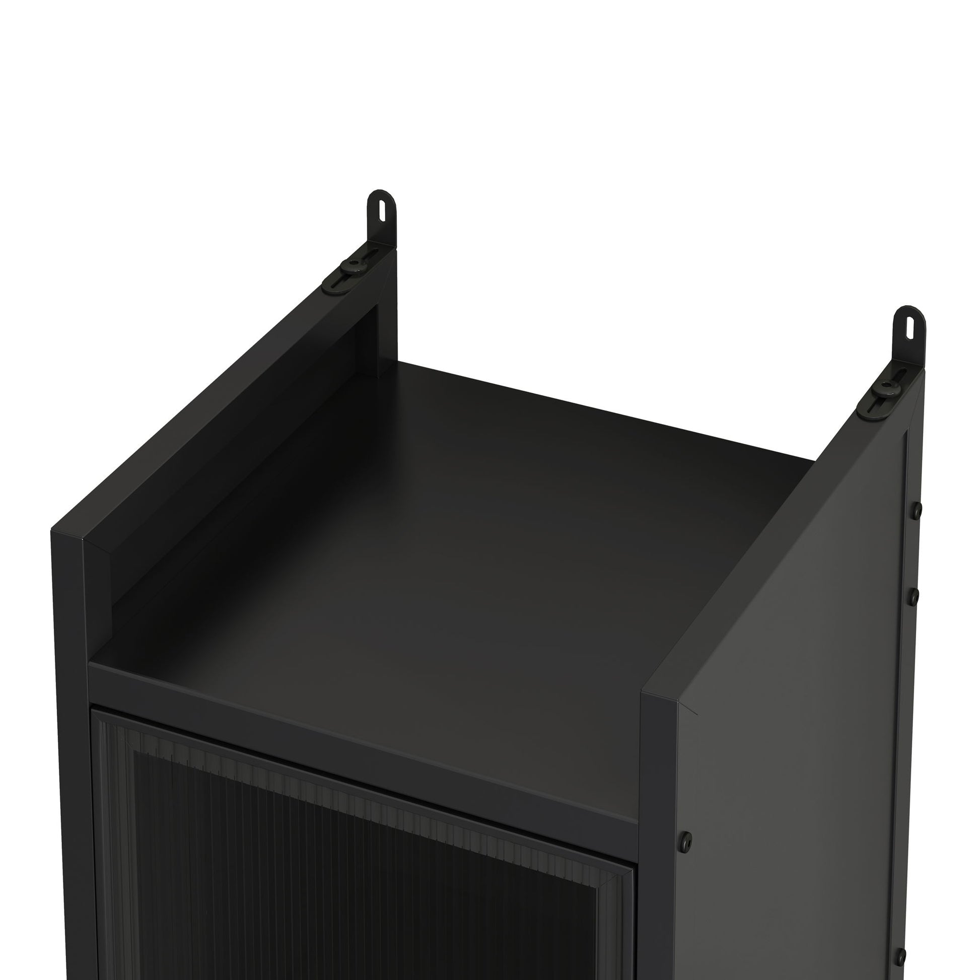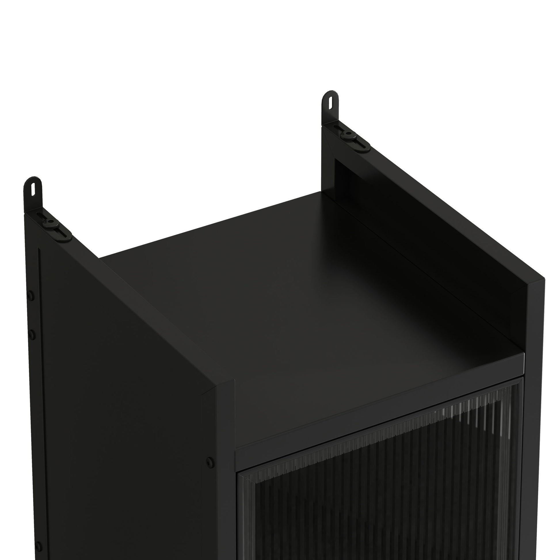 3 Tier Glass Door Cabinet With 4 Tier Storage - Black
