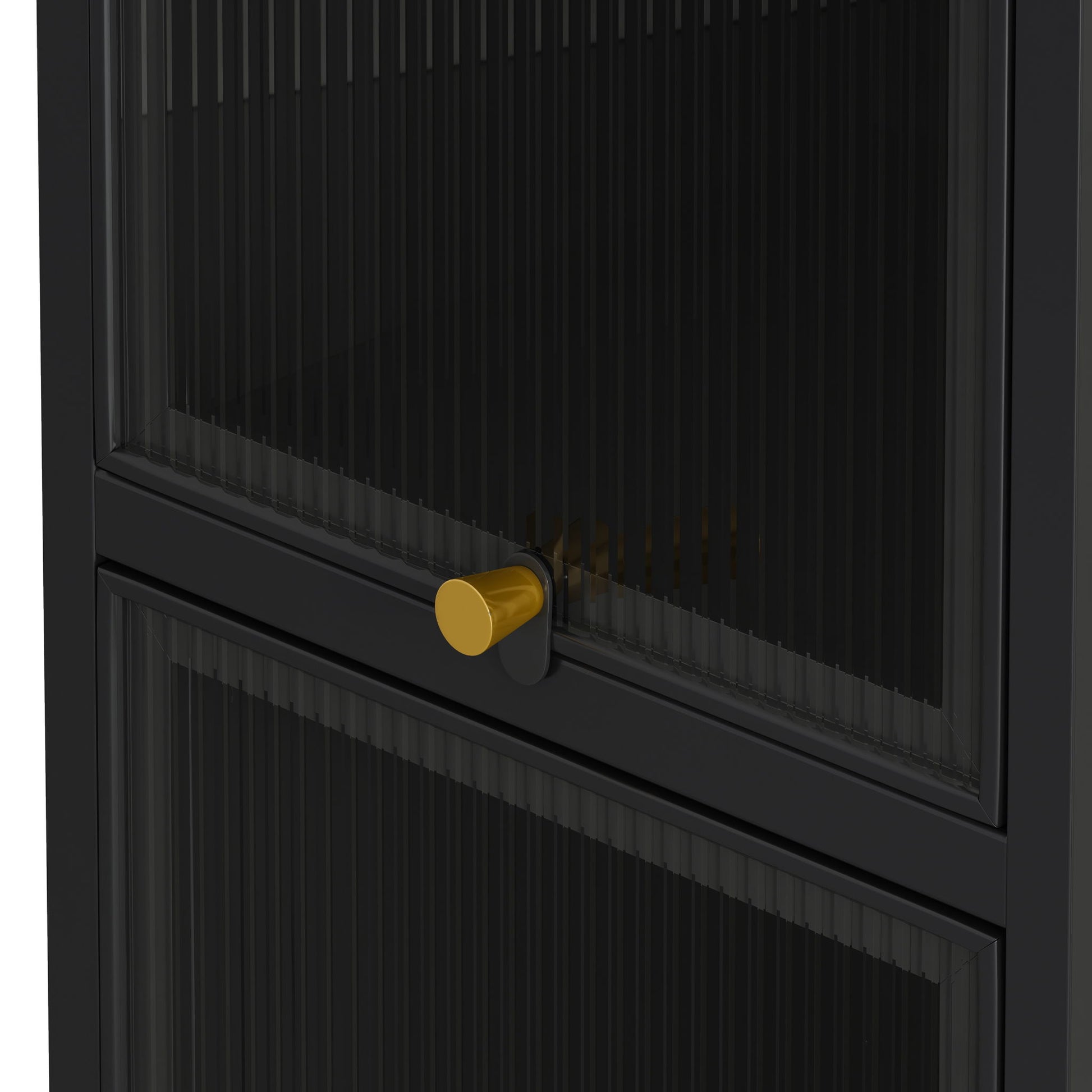 4 Tier Glass Door Cabinet With 5 Tier Storage For Entryway Living Room - Black